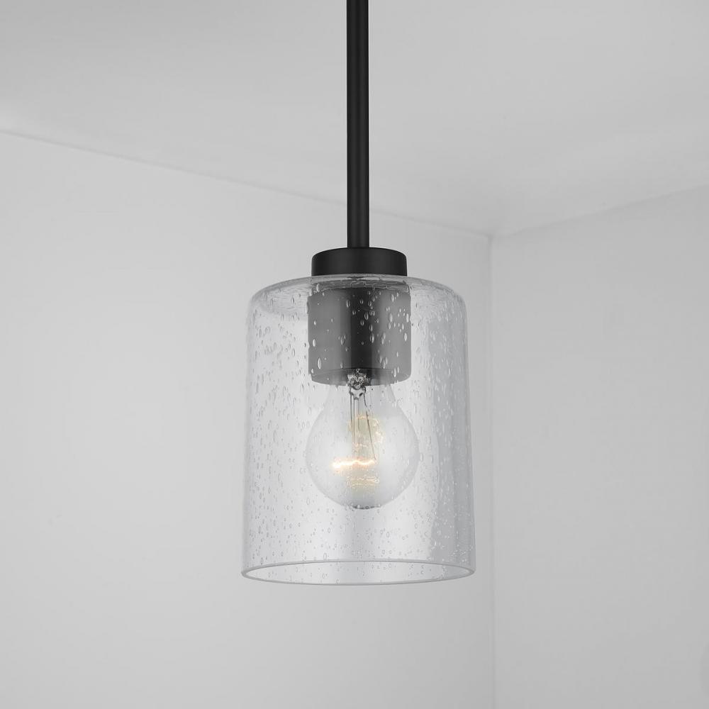 Clean lines, straight cylindrical and clear seeded glass and a variety of finish options make this collection super-versatile. The simple single mini-pendant is available in Brushed Nickel, Matte Black, Aged Brass or Bronze.