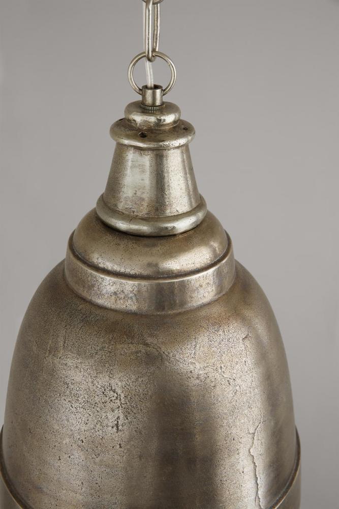 Ring in a hint of vintage charm and industrial character, with sand-cast aluminum bell pendants oxidized and antiqued by hand, revealing cracks and imperfections that mimic natural weathering.