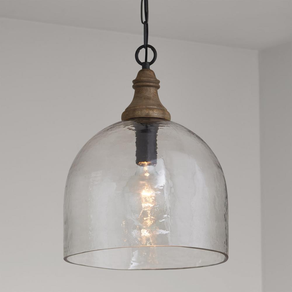 This Handcrafted 1-Light Pendant With Rippled Glass And Mango Wood Finial Shines Light On Organic Style, Catering To The Craving For Artisanship.