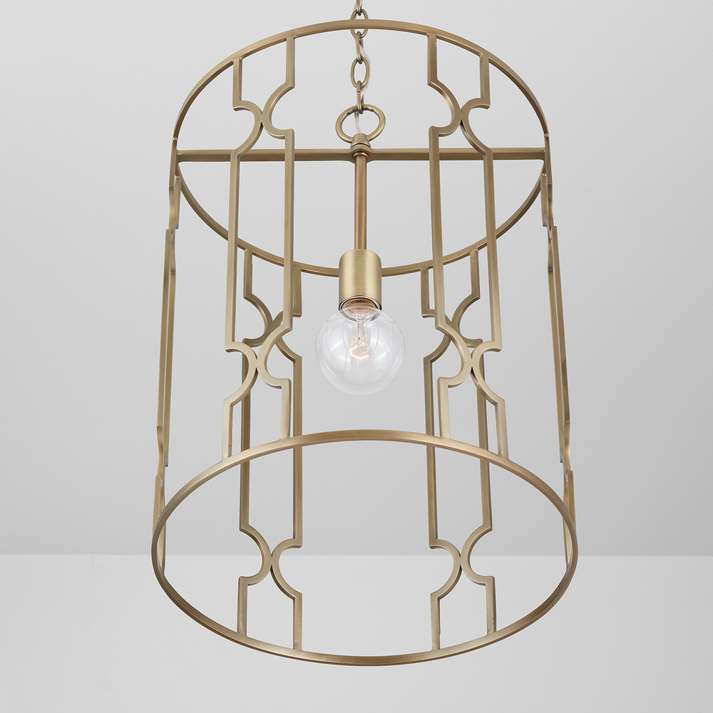 APPLICATIONS: Perfect for use in the kitchen, dining room, living room, foyer, bedroom or office. Stunning aged brass finish enhances the detailed drum design.