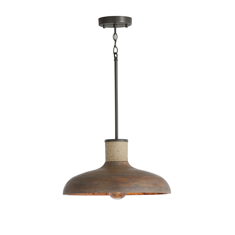 Rustic farmhouse flair meets Scandinavian simplicity with the 1-Light Pendant. The artisan crafted Grey Wash mango wood used to create the wide dome shape evokes a soft, yet statement-making vibe while the hand-woven jute rope adds a subtle layer of texture.