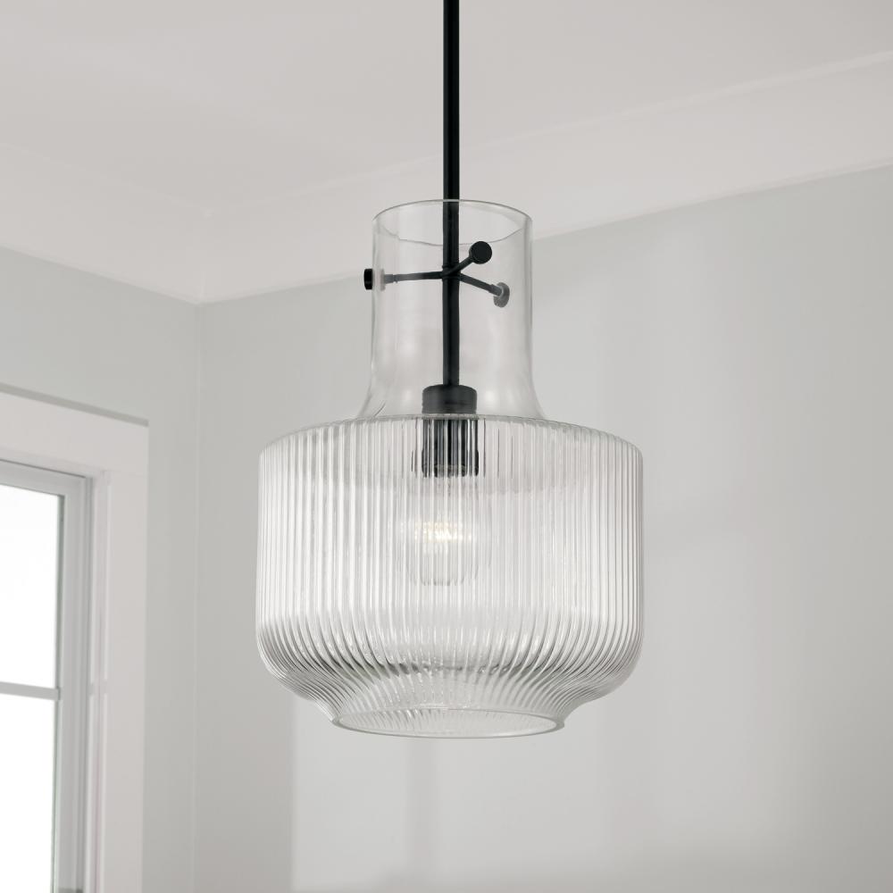 Fluted glass and a tulip silhouette create organic intrigue with the Nyla Pendant. The timeless tone of the Matte Black finish reflects a sleek and stunning style.
