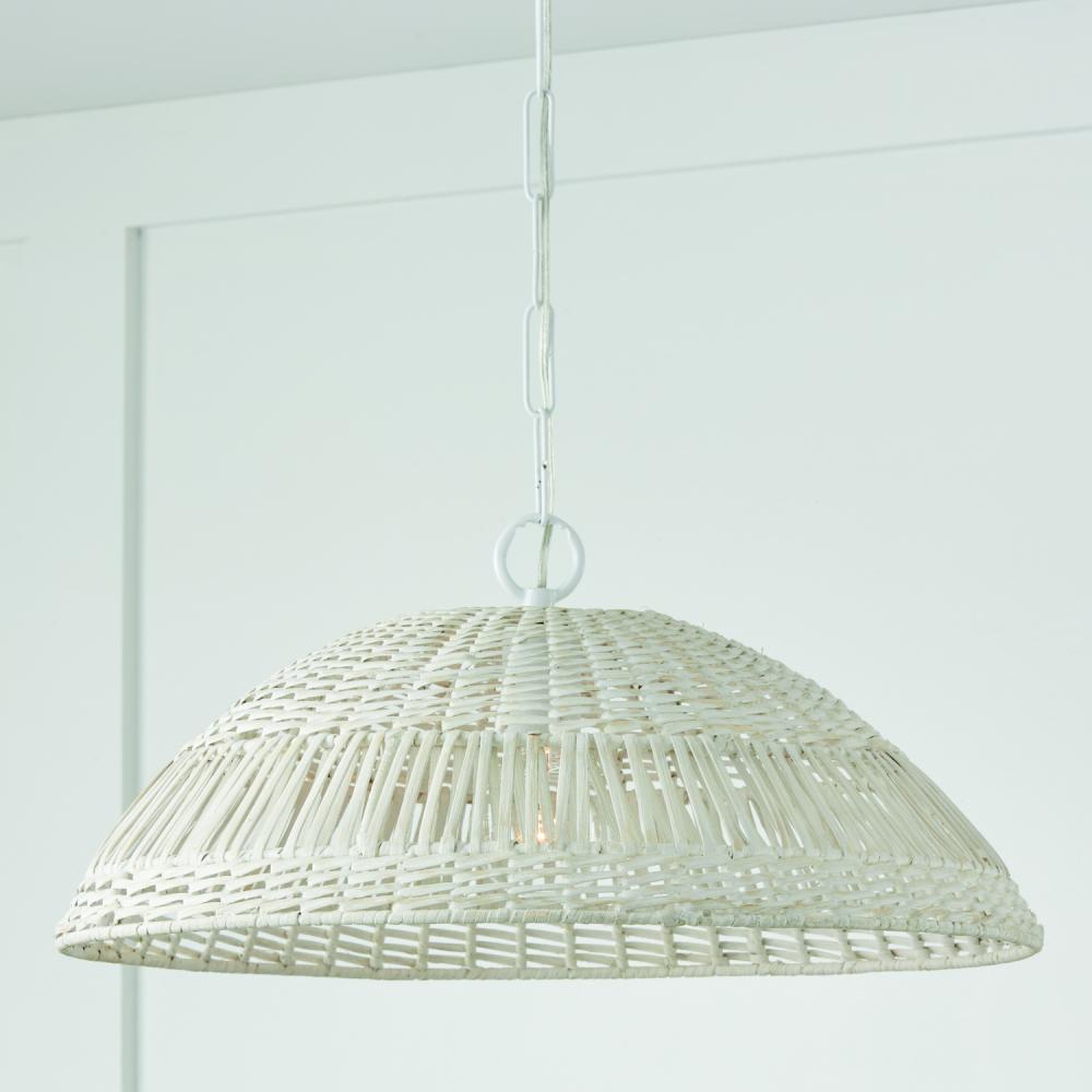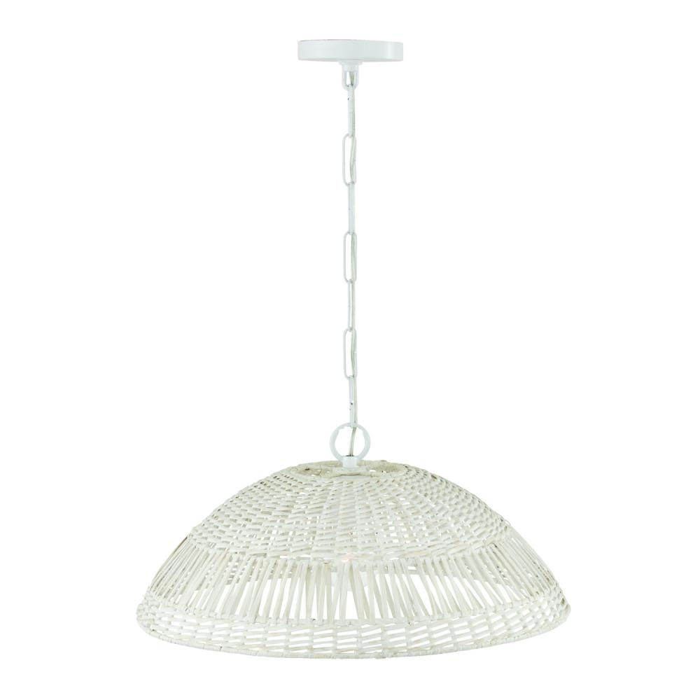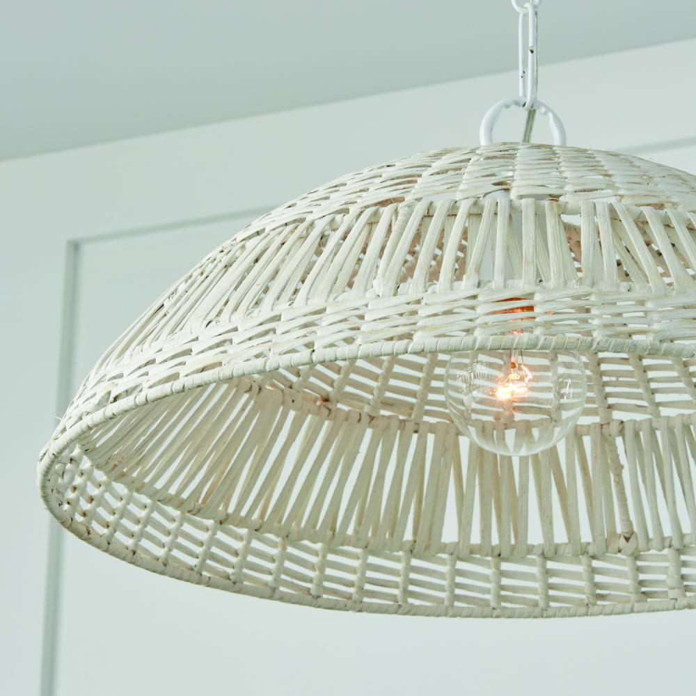 21"W x 9.25"H 1-Light Pendant in Chalk White with Hand-Woven Painted Rattan Basket