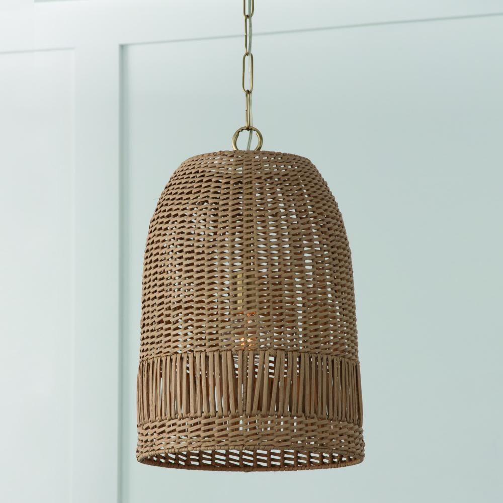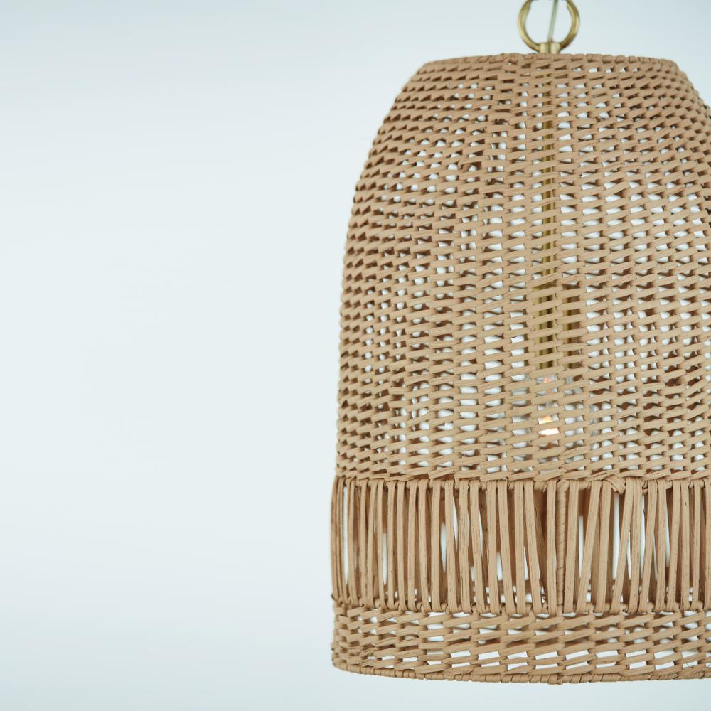 13.75"W x 21"H 1-Light Pendant in Matte Brass with Hand-Woven Painted Rattan Basket