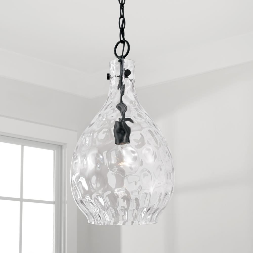 9.75"W x 18"H 1-Light Pendant in Matte Black with Clear Teardrop Water Glass