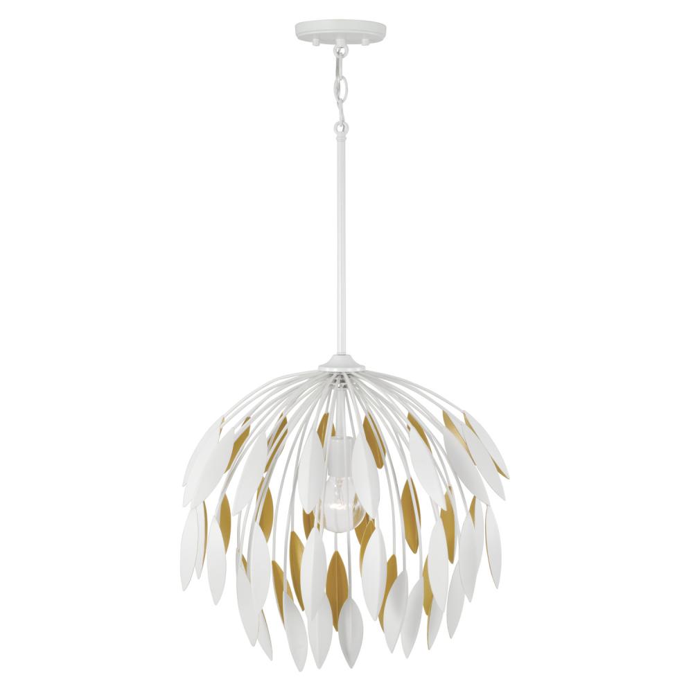 Invite glamour to any space with the Margeaux Medium Pendant. Layers of cascading leaves create decadent dimension, while the Matte White finish with Buffed Gold interior invites glimmering intrigue from every angle.