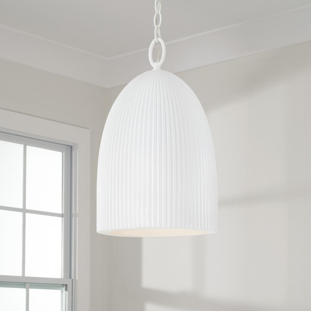 Sophisticated style and artisan details create the Mallory Pendant. The handcrafted fluted ceramic shade perfectly complements the curved silhouette, while the textured finish delivers all-over visual dimension.