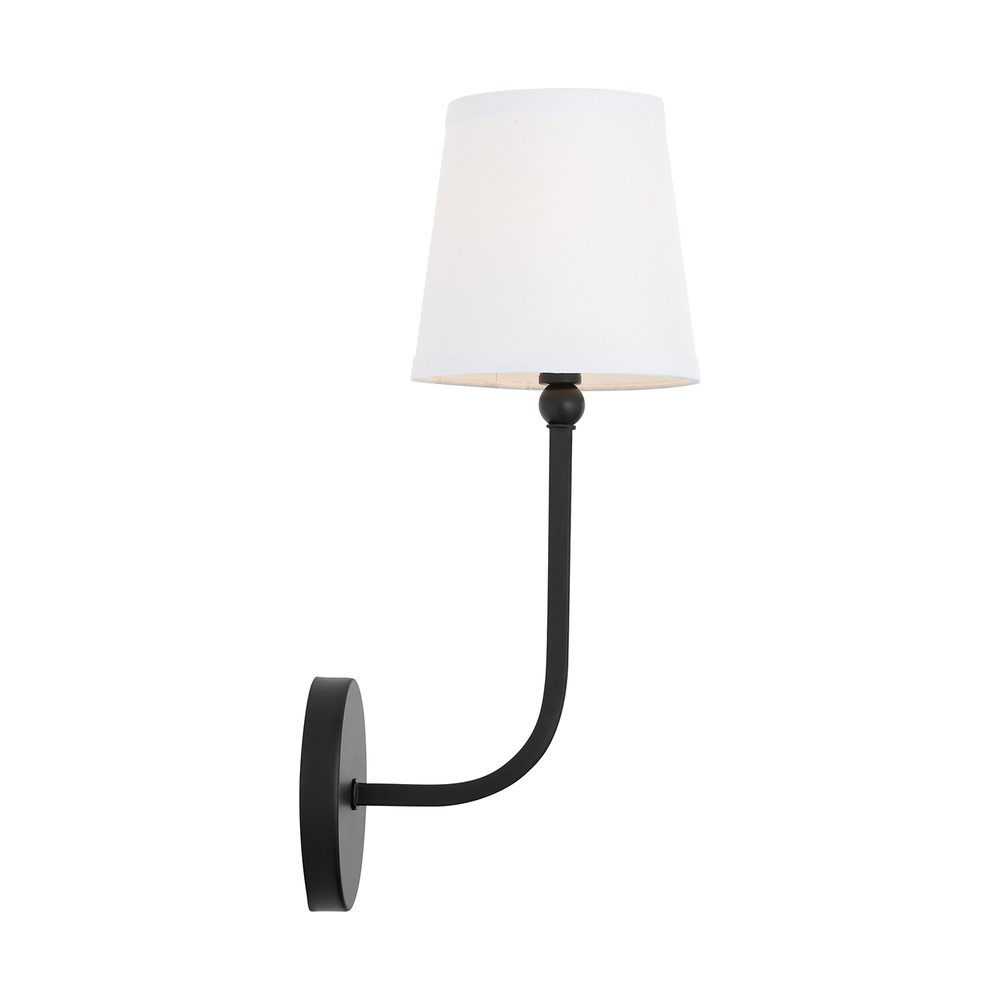The Dawson 1-light sconce stands out with a decorative, white, tapered fabric shade topping off a curved arm. Clean design complemented by an Aged Brass finish renders this light fixture a timeless, classic yet versatile visual appeal.