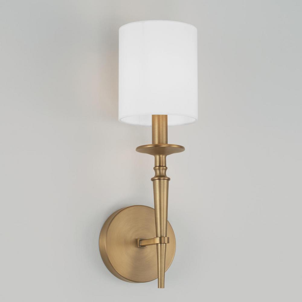 The dramatic candlestick detailing on the Abbie 1-Light Sconce in Aged Brass brings a glamourous nod to this updated design.