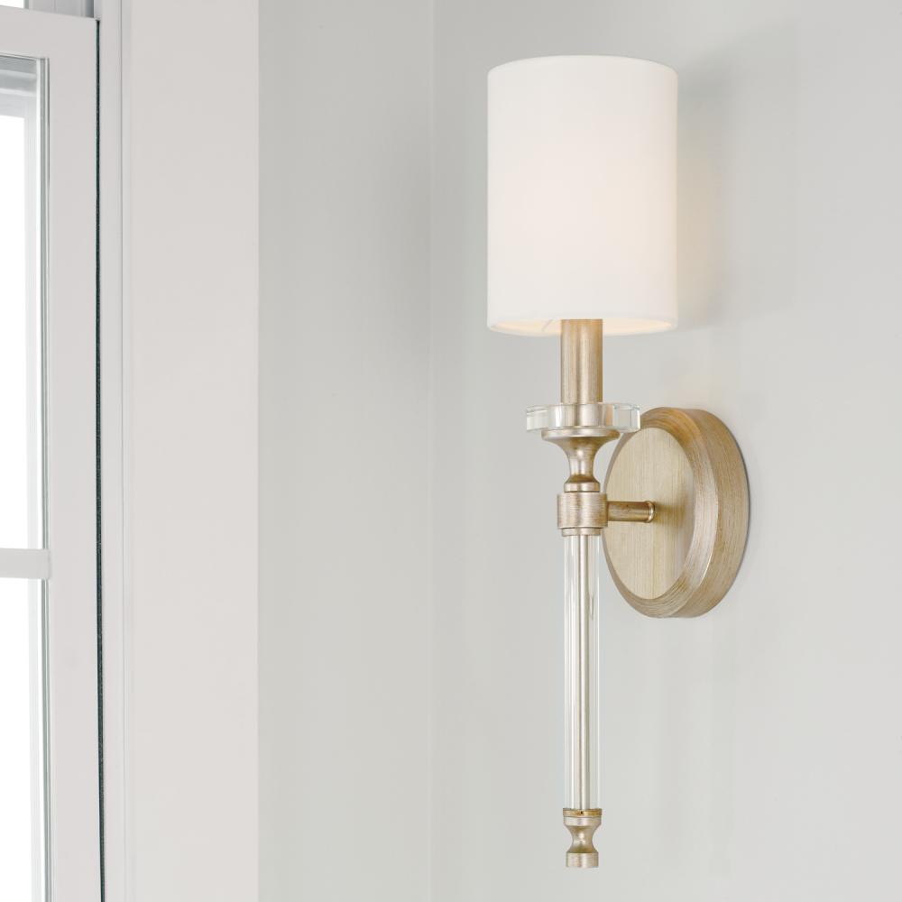 Simple and stunning, the Breigh Sconce adds understated glamour to any space. The shimmer of the Brushed Champagne finish and the shine of the acrylic rod and bobeche create a look of luxe and sophistication.