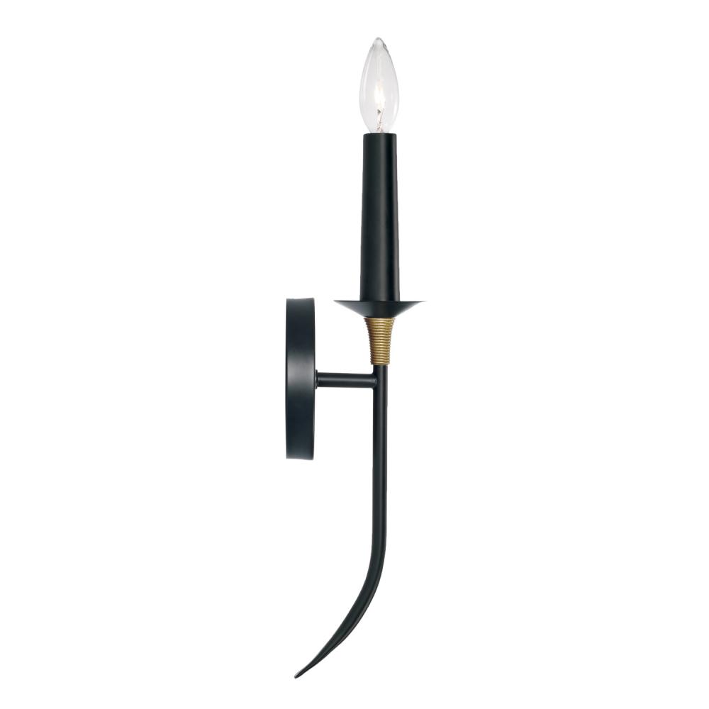 A sharply tapered curve and designer details dial up the drama with the Amara Sconce. The wrapped accent in a brass tone adds a layer of unexpected dimension and the Matte Black finish punctuates the personality of any space.