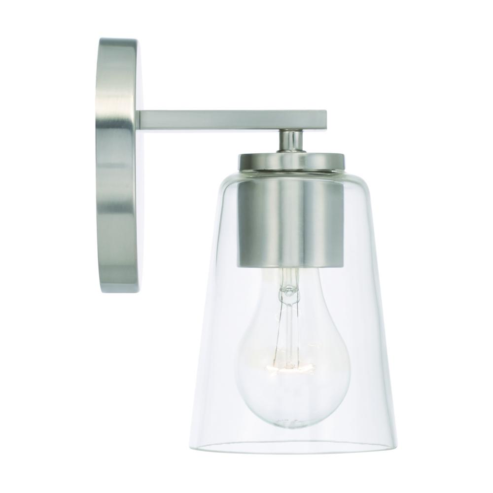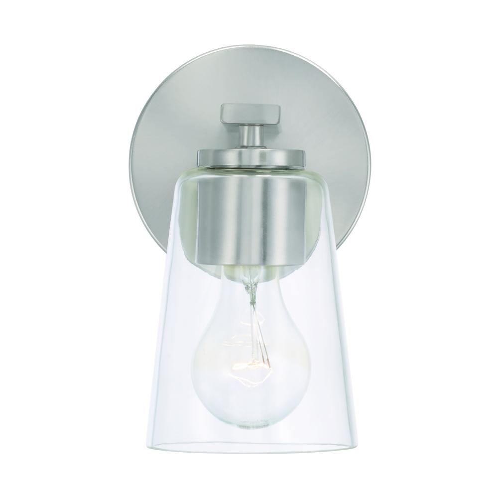 5"W x 8.5"H 1-Light Sconce in Brushed Nickel with Clear Glass