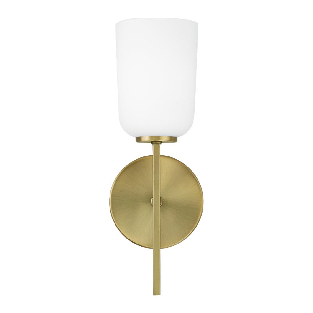 5"W x 14"H 1-Light Sconce in Aged Brass with Soft White Glass