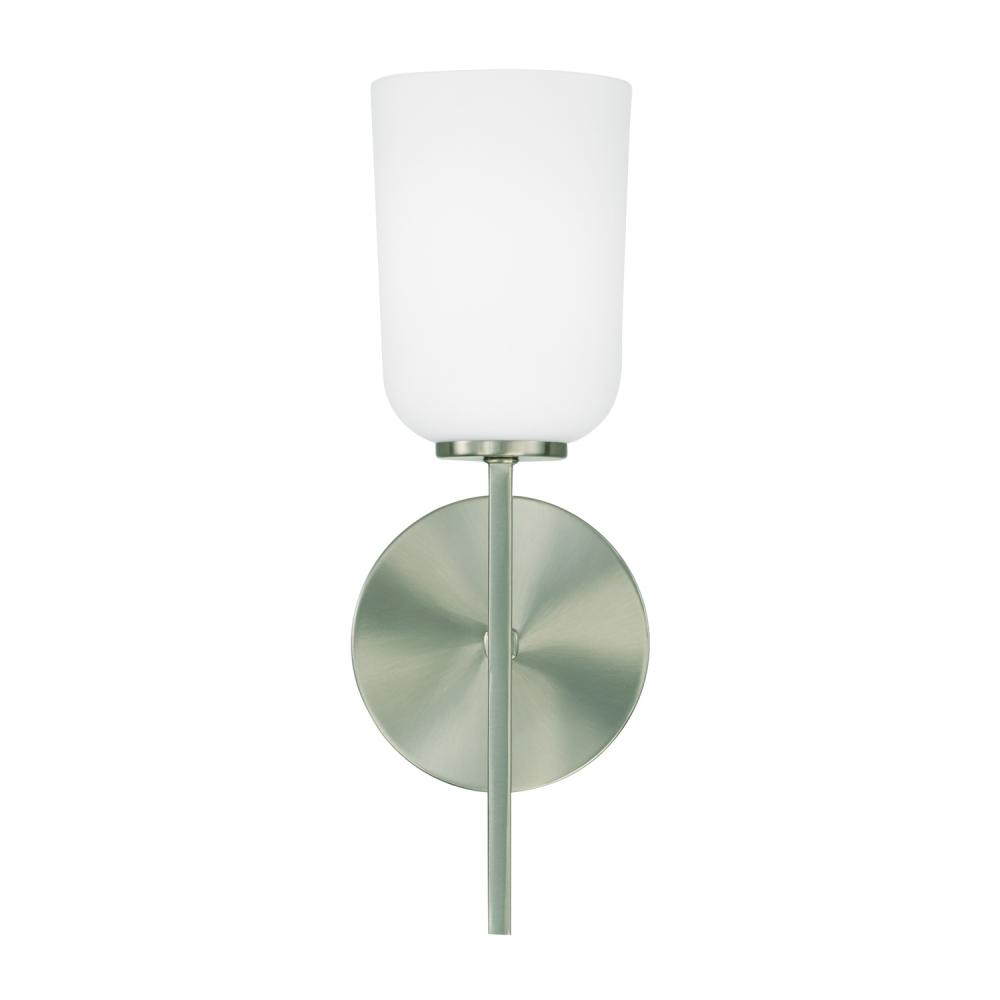 5"W x 14"H 1-Light Sconce in Brushed Nickel with Soft White Glass
