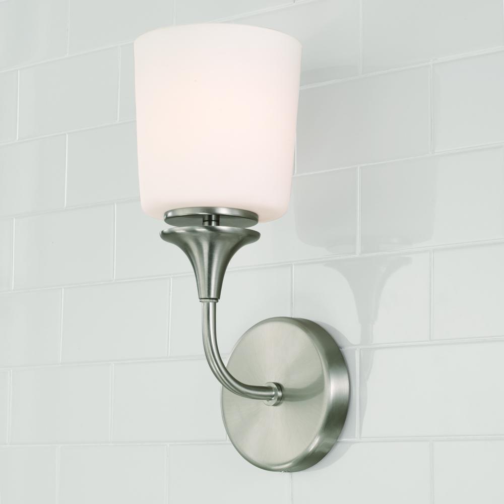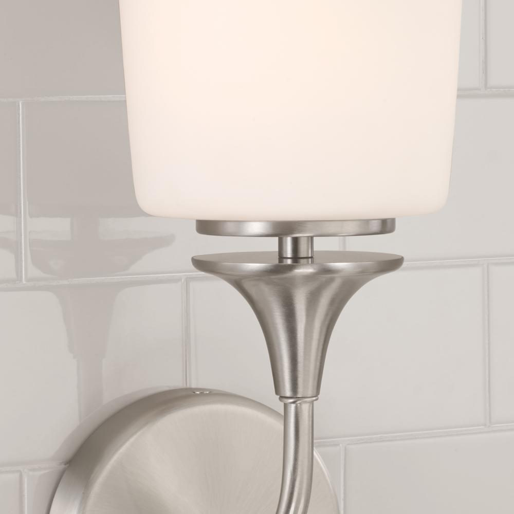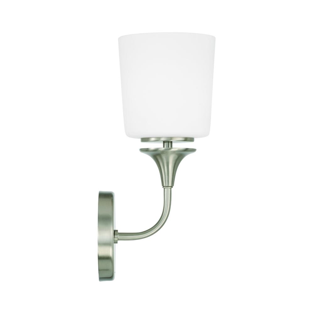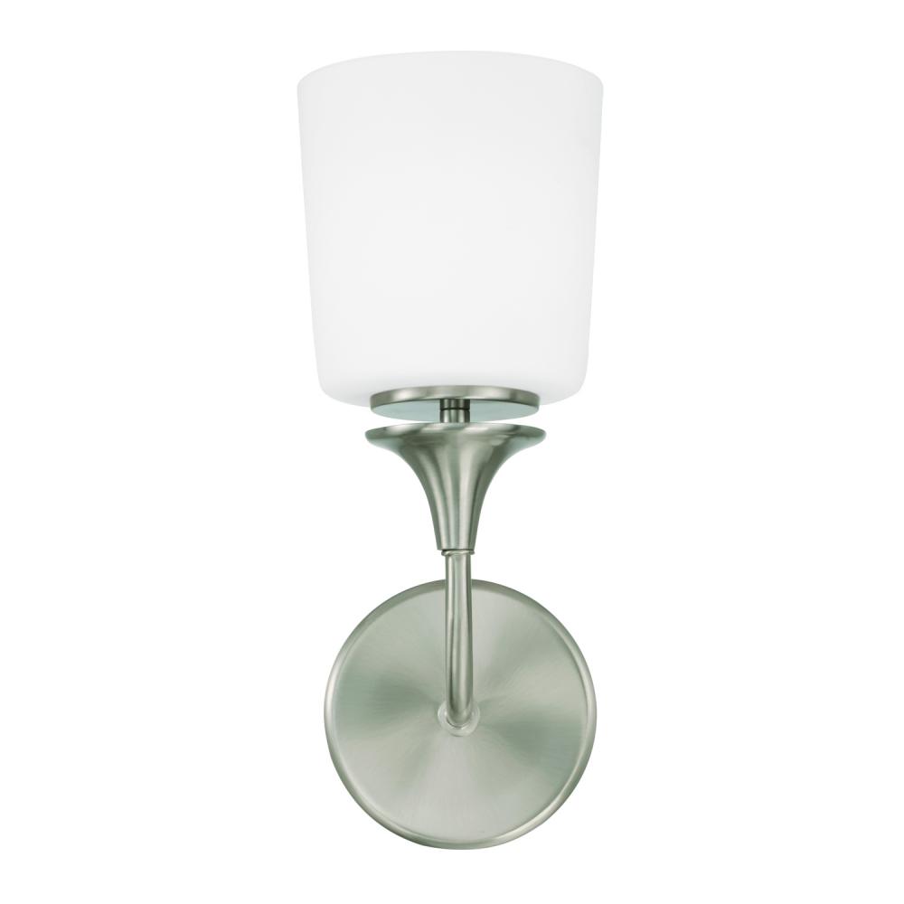 5.5"W x 13.75"H 1-Light Sconce in Brushed Nickel with Soft White Glass