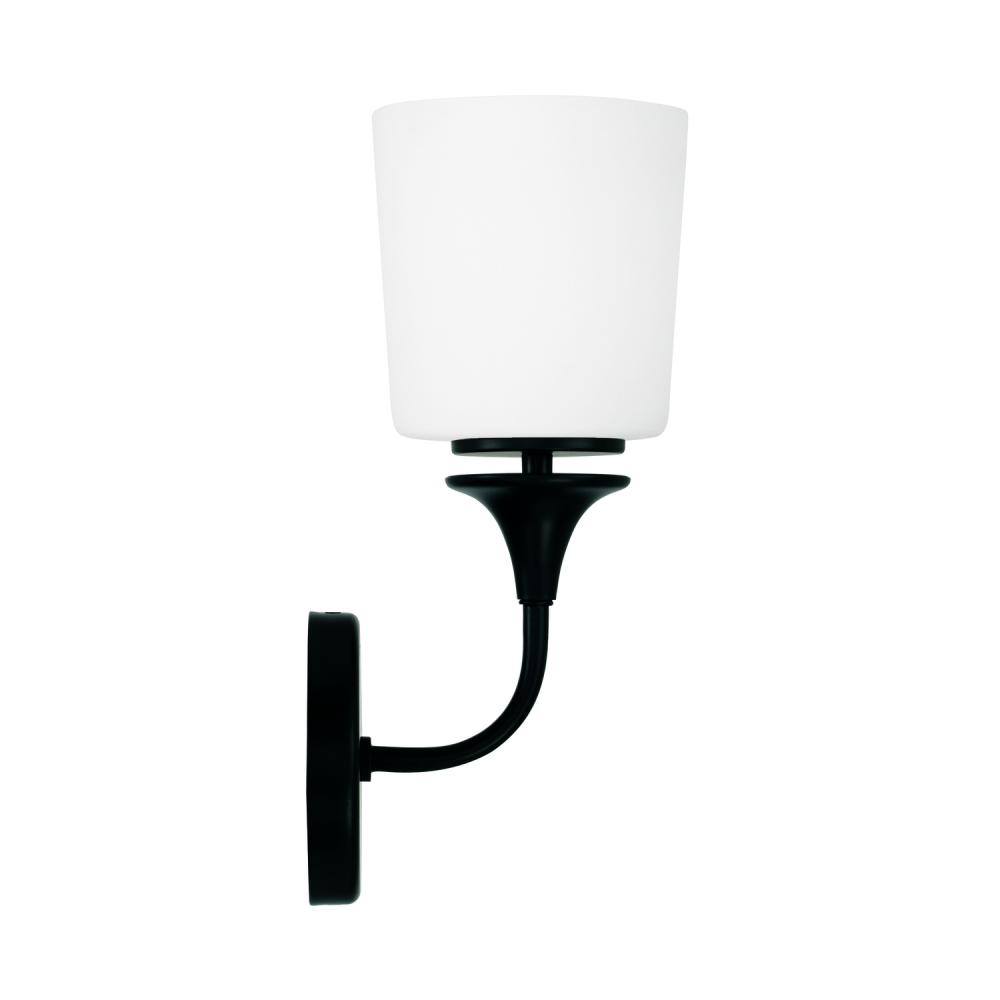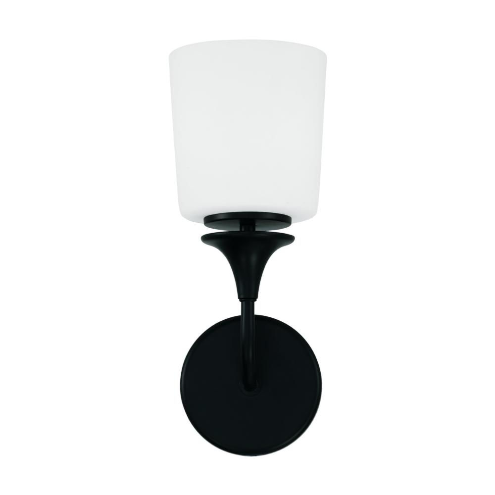 5.5"W x 13.75"H 1-Light Sconce in Matte Black with Soft White Glass