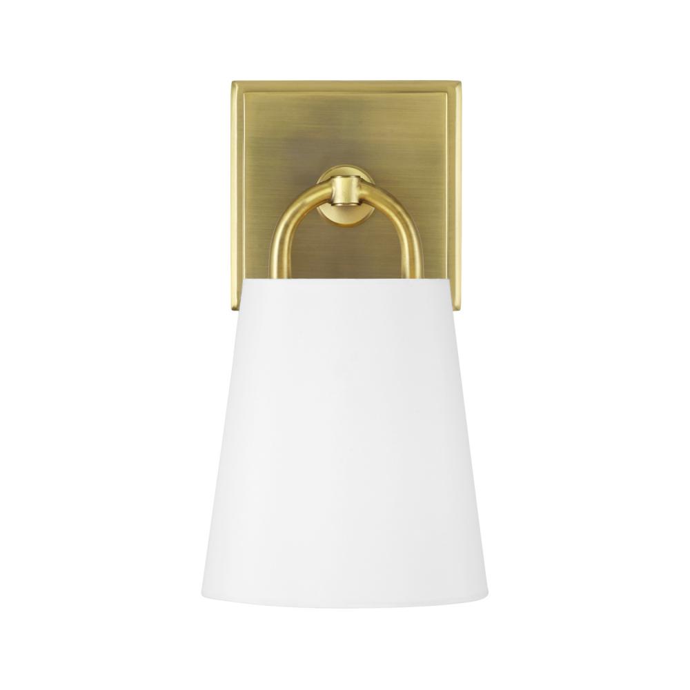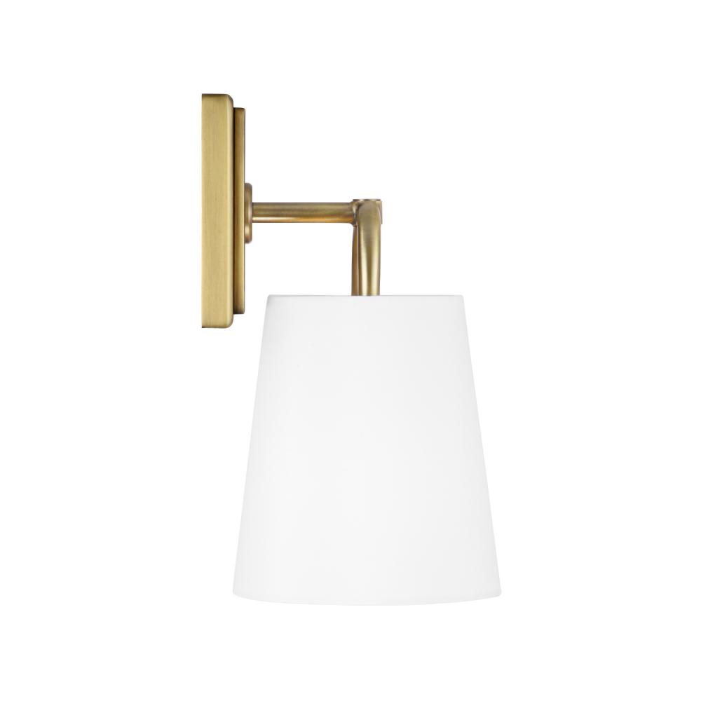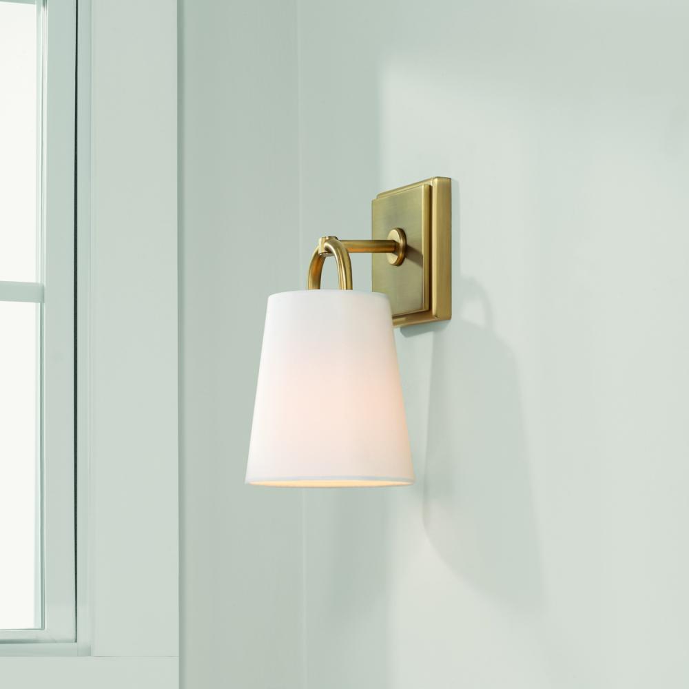 6"W x 11"H 1-Light Sconce in Aged Brass with White Fabric Shade