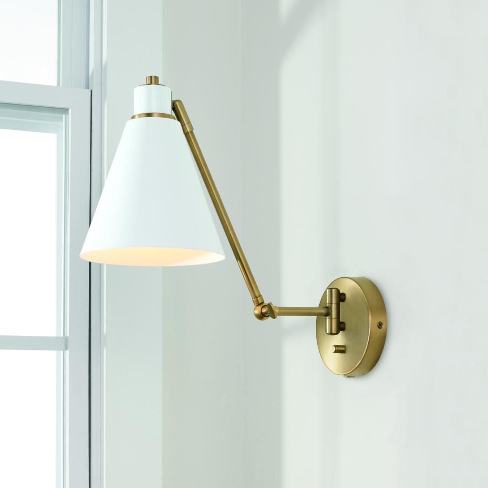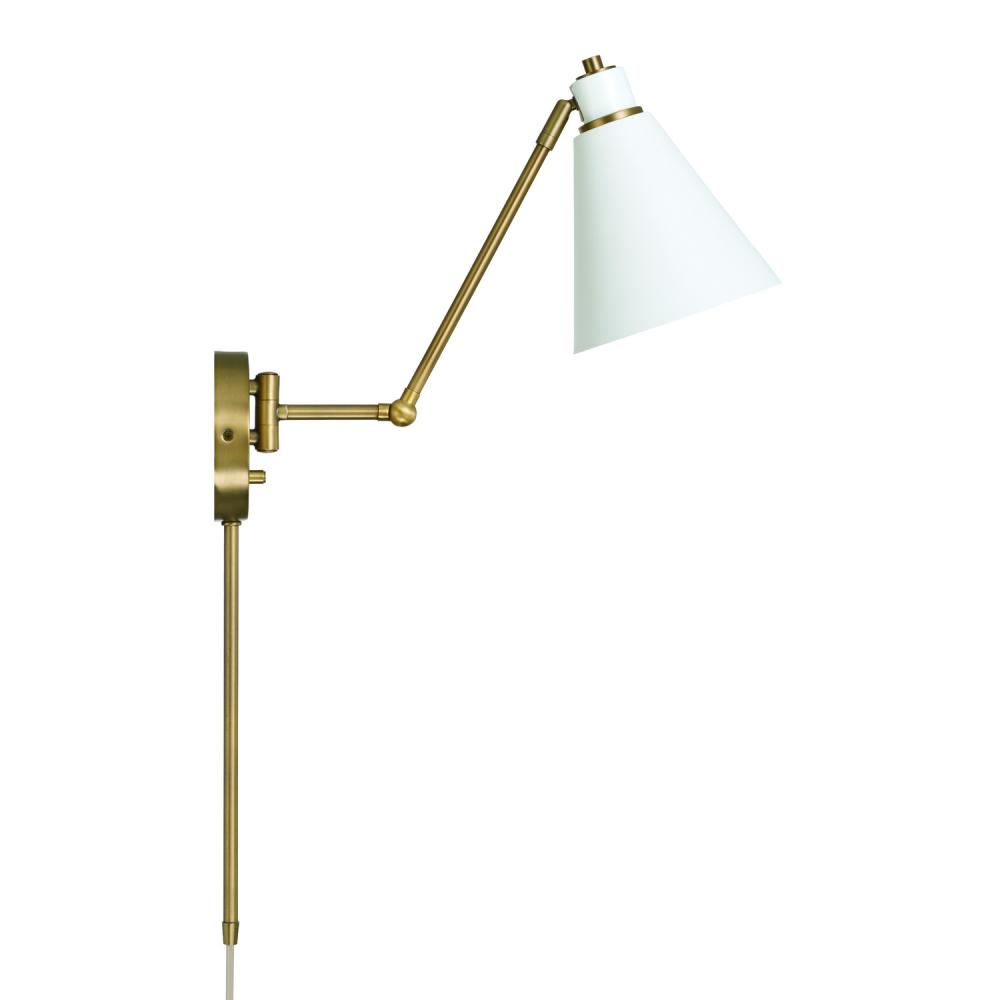 Adjustable Swing Arm and Pivoting Shade. Dimmable Switch. Optional Plug-In with 12 Cord Cover.