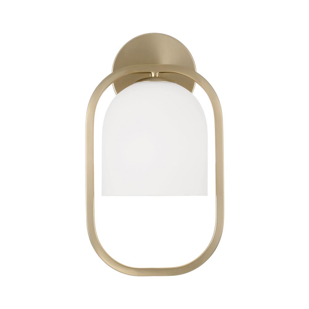 DETAILS: Curved contours in Soft White glass create sophisticated, modern style, accented by the subtle shine of the Matte Brass finish.
