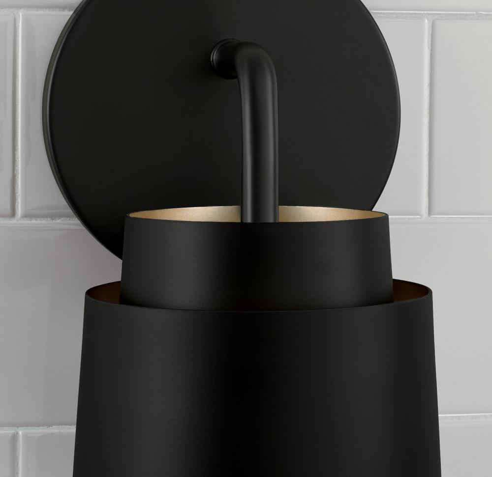 Tapered and concise, the Pratt Sconce brings sophisticated style to task lighting. Finished in Matte Black, the tiered metal shade creates a sleek aesthetic, while the inner Soft Gold finish invites intriguing dimension.