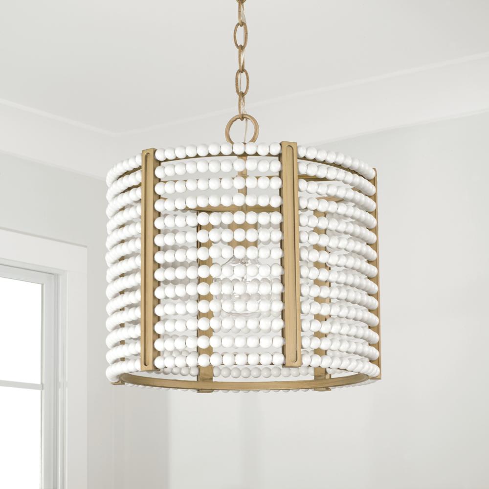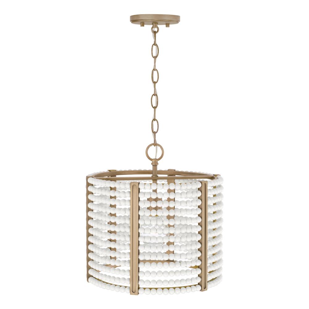Glitz and glamour meet bohemian chic with the Brynn Dual Mount. Whether hung as a pendant or semi-flush, the classic drum silhouette and rings of matte white beads paired with the golden tones of the Painted Aged Brass finish bring laid back luxury to life.