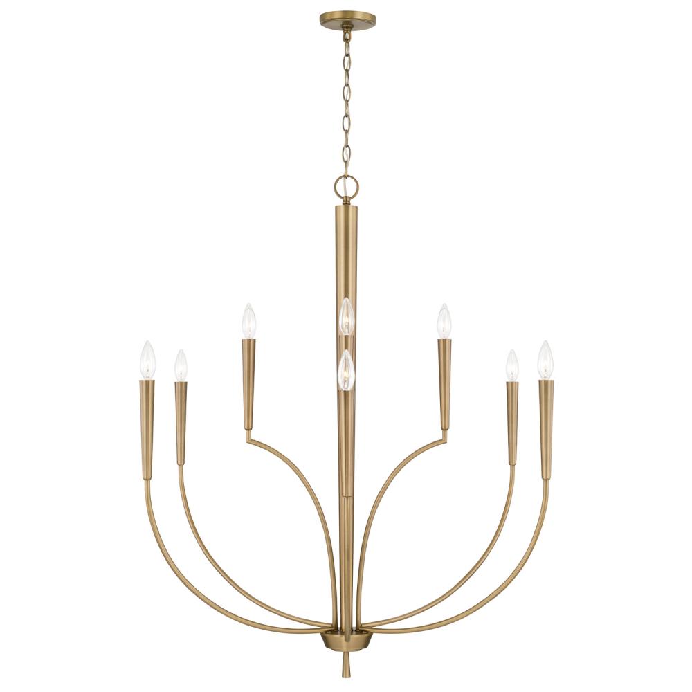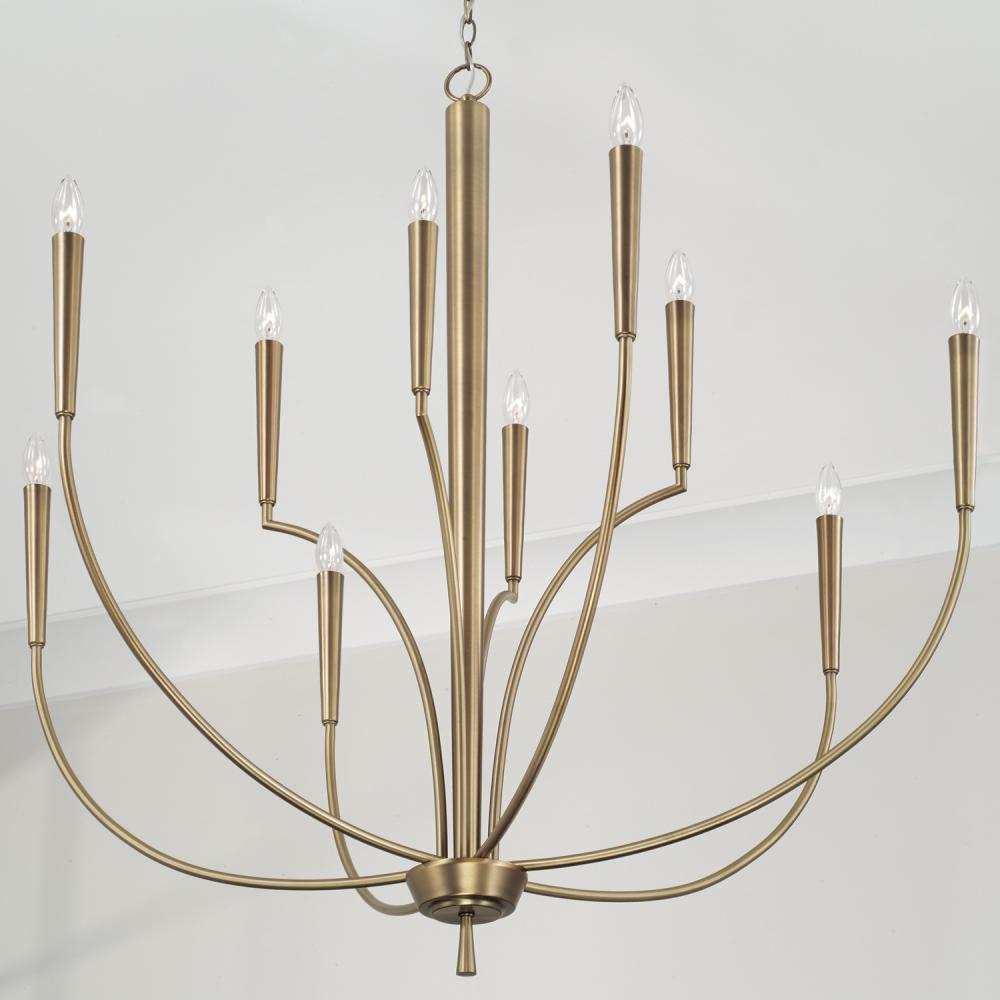 With a classic elegance that commands attention, the Holden Large Chandelier adds sleek sophistication to any space. The tapered candle sleeves in an Aged Brass finish adds dimension and the subtle details bring designer style.