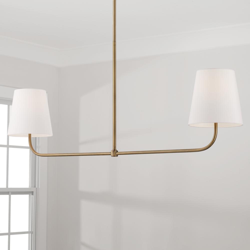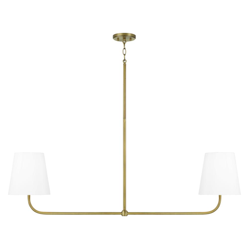 50"W x 21.25"H 2-Light Island in Aged Brass with White Fabric Stay-Straight Shade