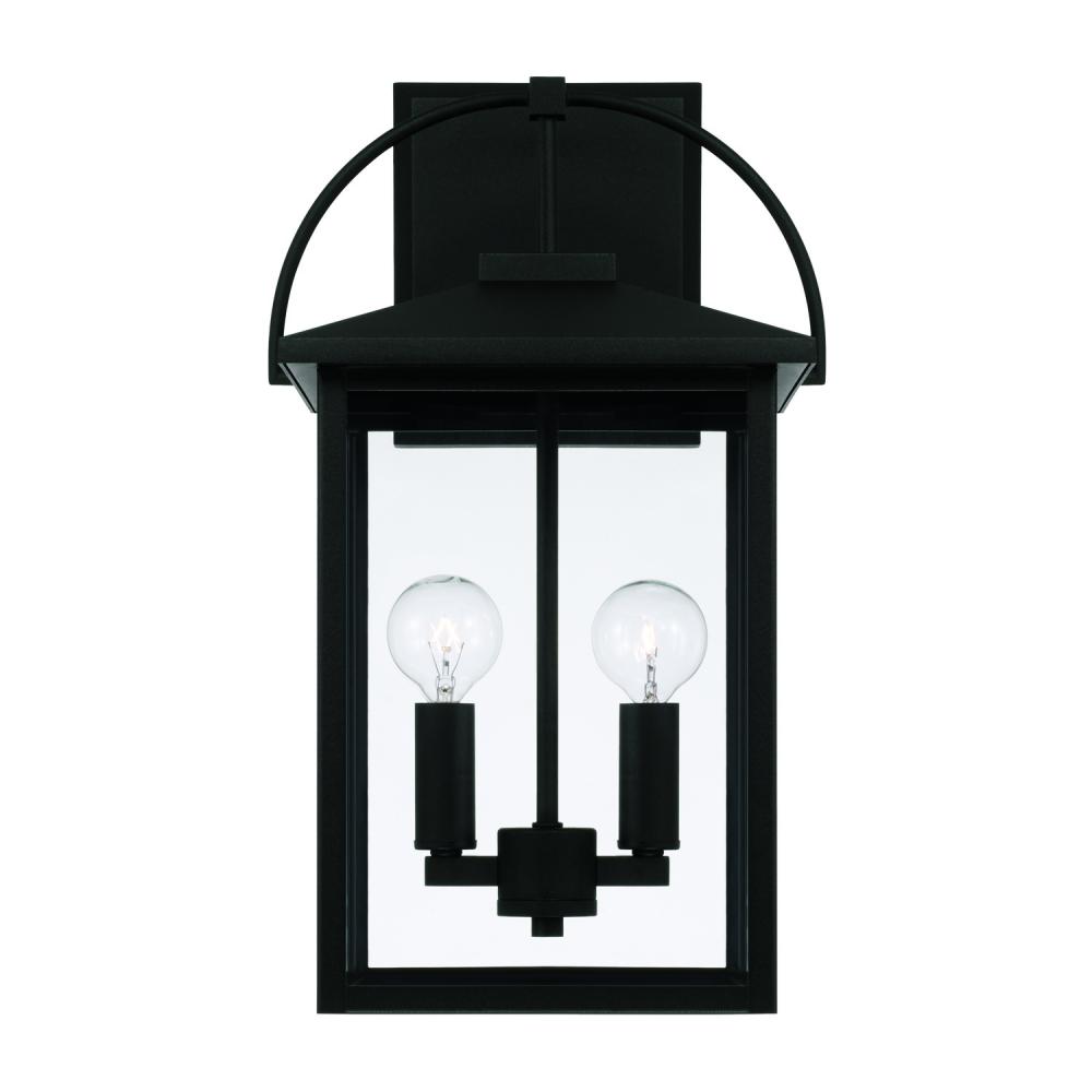9.5"W x 16.5"H 2-Light Outdoor Wall Lantern in Black with Clear Glass