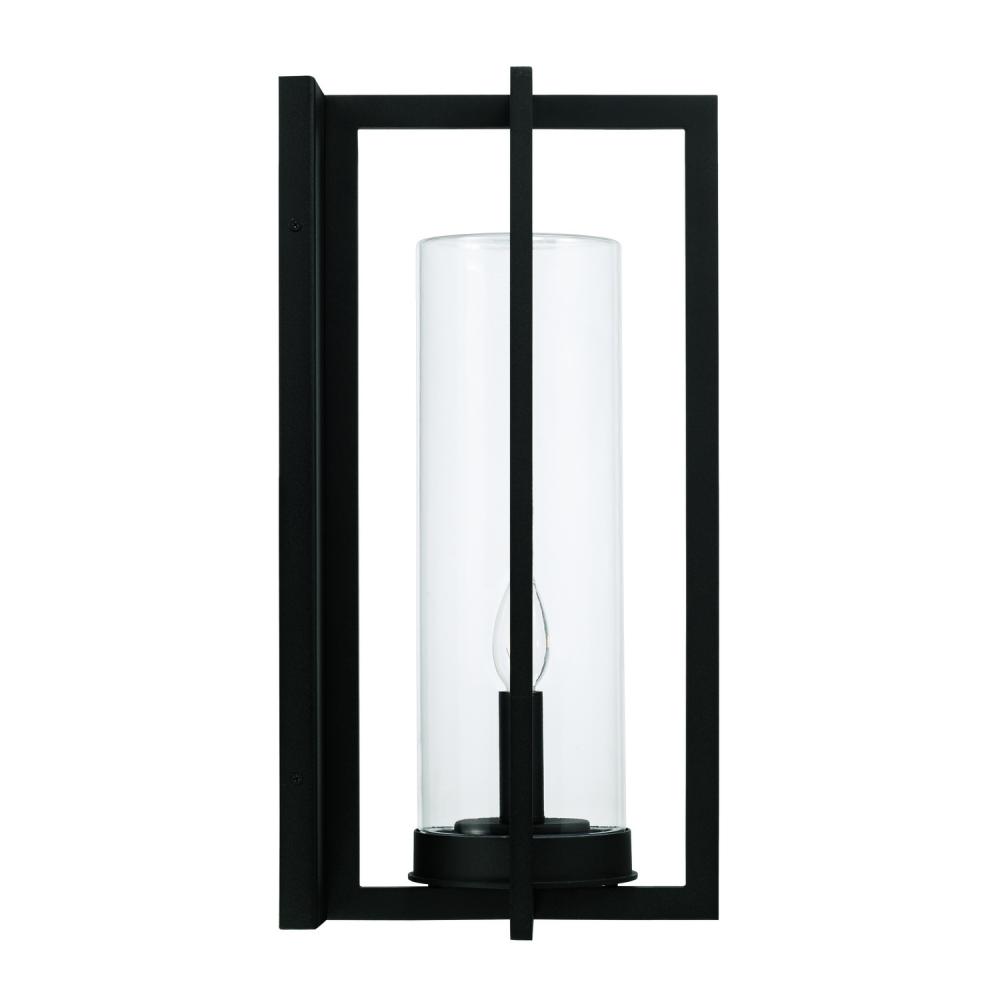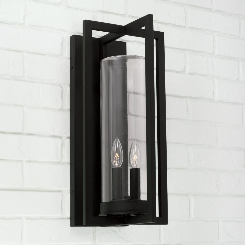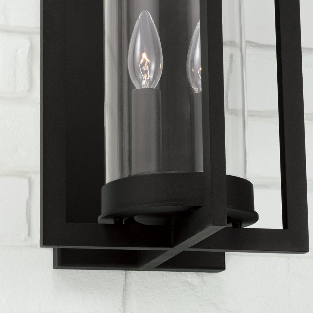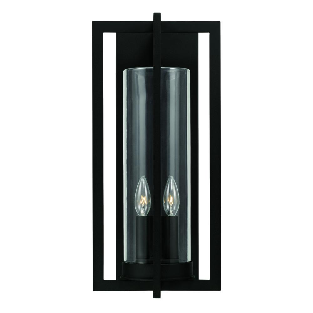 9.5"W x 20"H 2-Light Outdoor Wall Lantern in Black with Clear Glass Cylinder