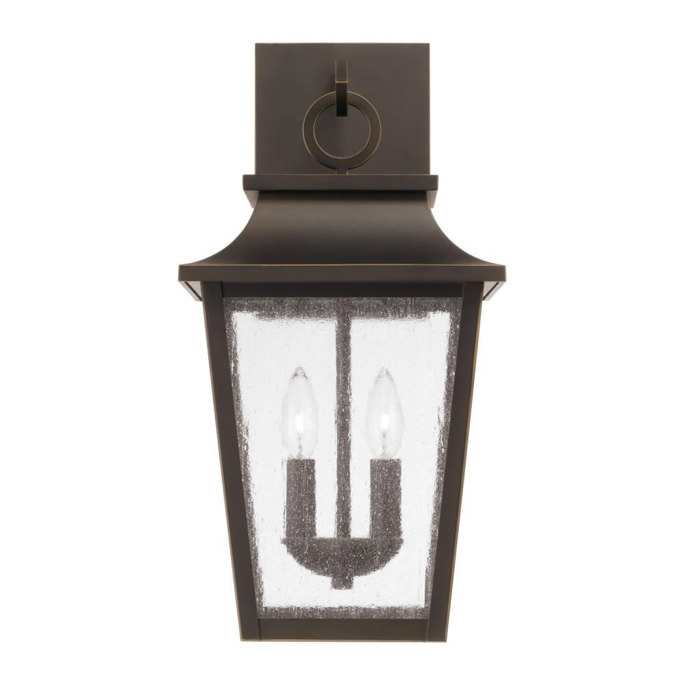 Take the charm outside with the Chandler Outdoor Wall Lantern. The Oiled Bronze finish accents the curved lines and ring detail atop the tapered frame, while the Antiqued Glass creates a unique glow. Part of our Rain or Shine Series and backed by our five-year warranty.