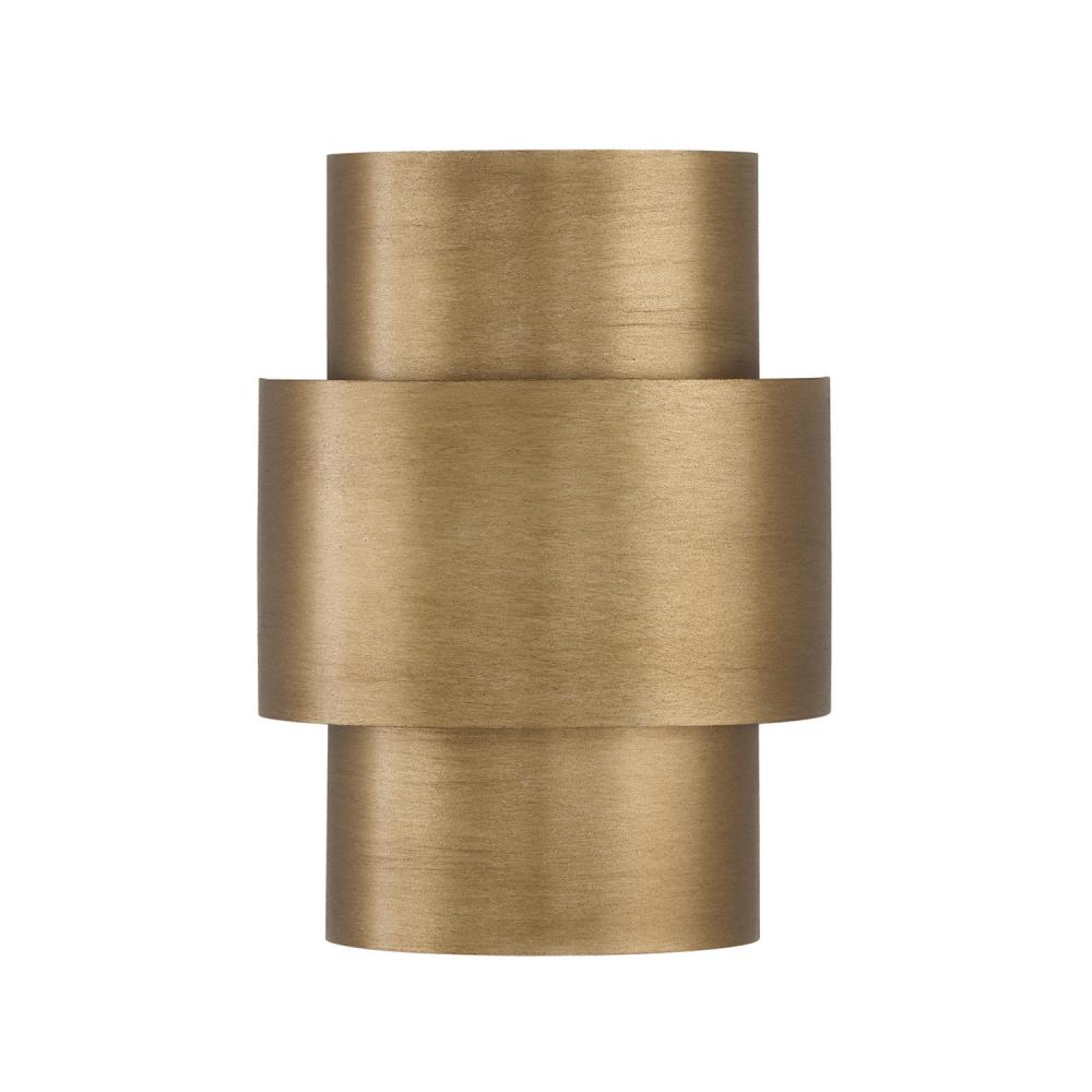 The sculptural, statement-making Jude Sconce evokes contemporary glam with a bold, graphic shape. The brushed visual texture of the finish has luminescence in the light and adds a layer of visual interest to the stunning tiered cylindrical silhouette.