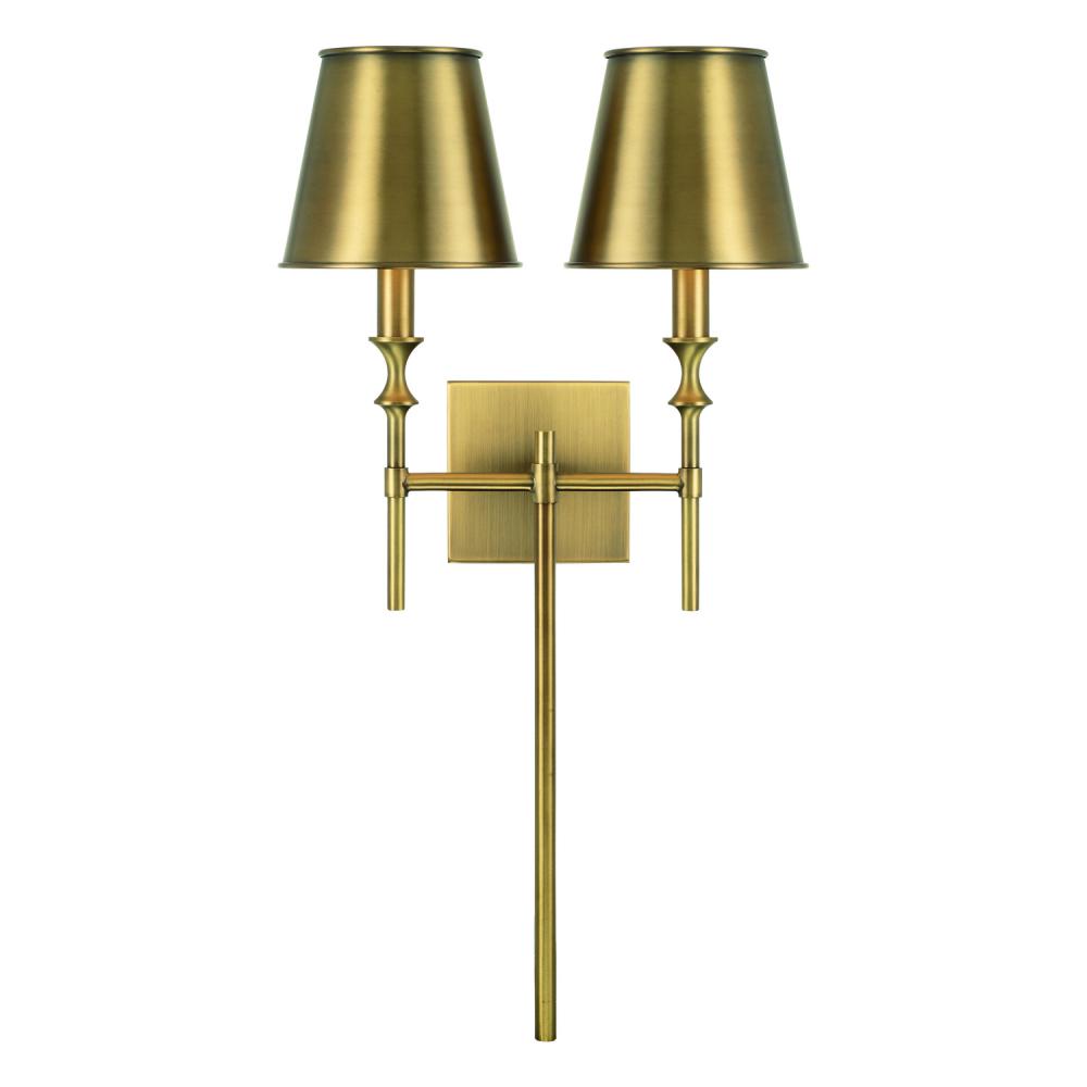 14.5"W x 26"H 2-Light Sconce in Aged Brass with Metal Shades with White Interior