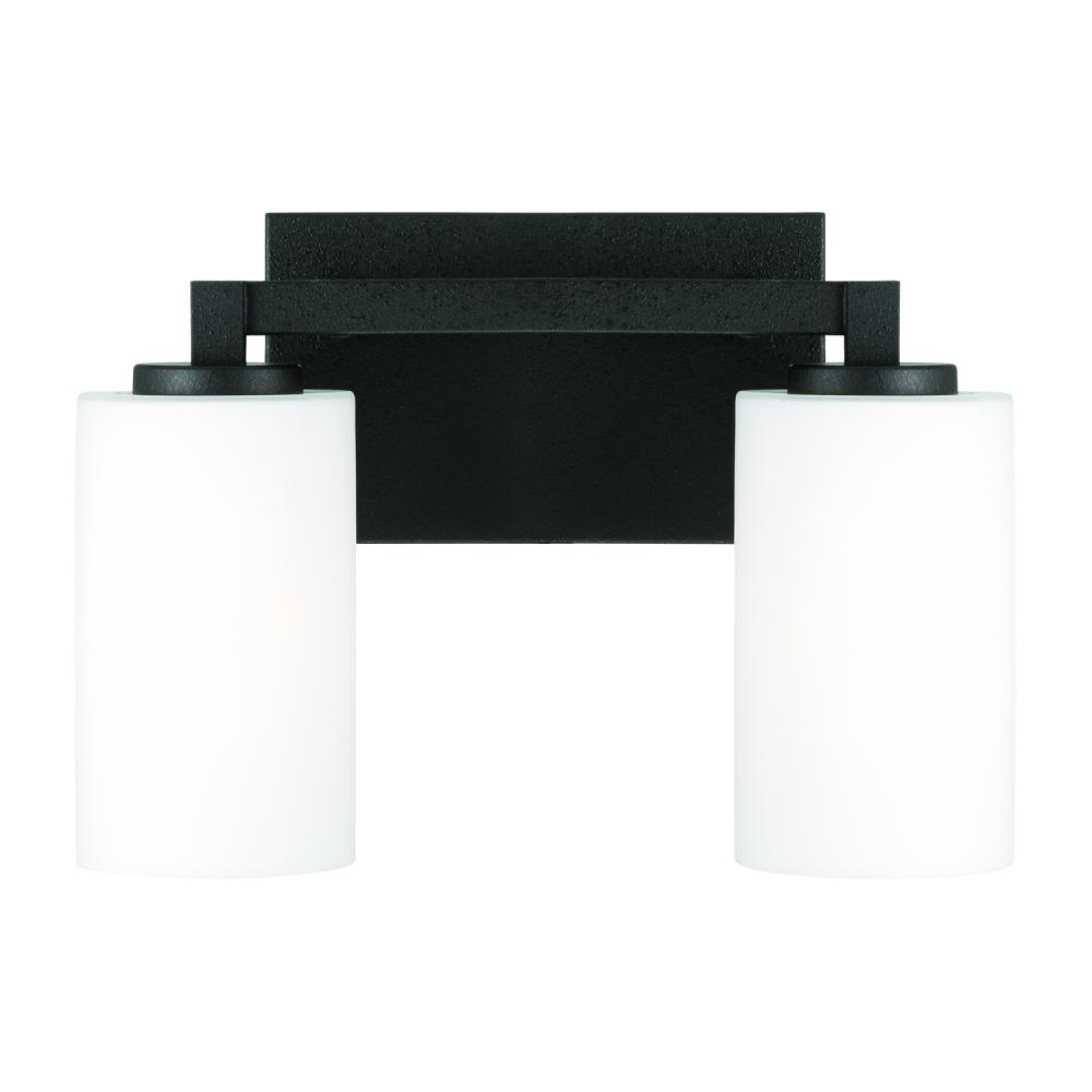 13.25"W x 9.5"H 2-Light Vanity in Black Iron with Soft White Glass