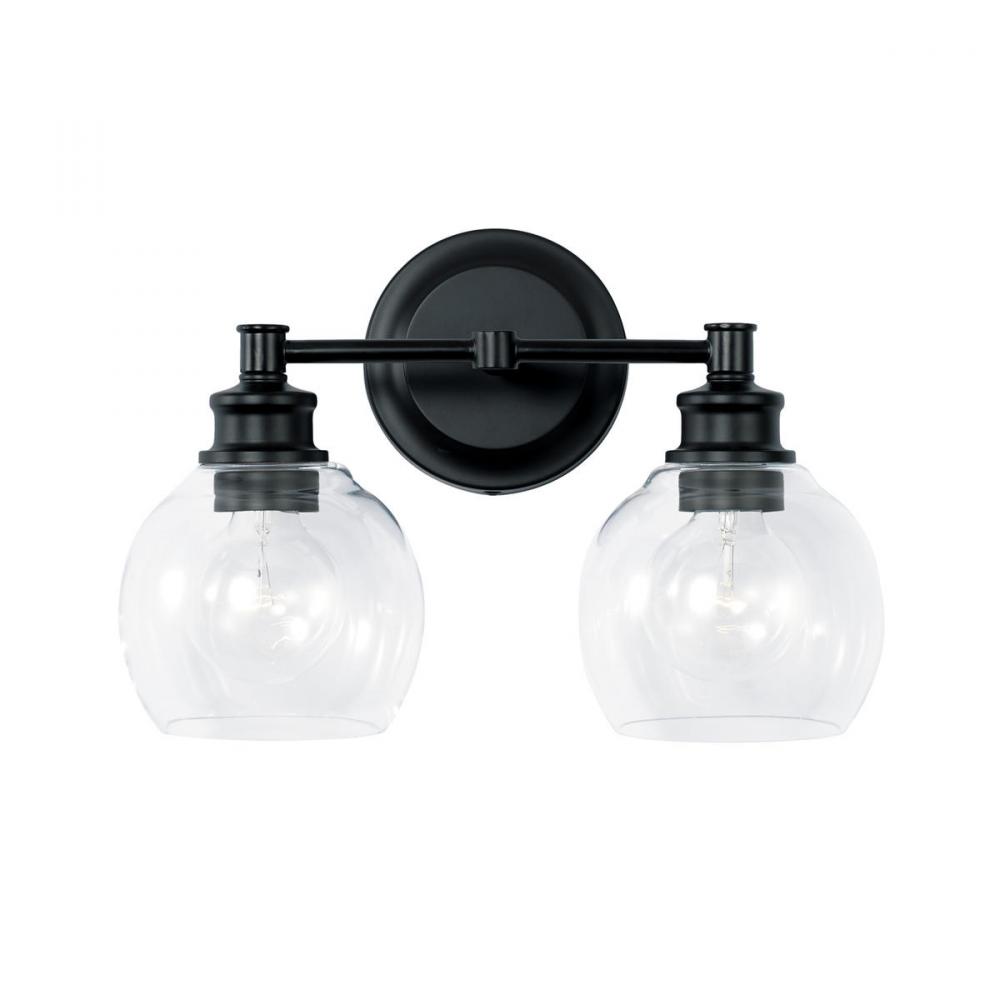 Subtle details enrich the minimalistic design of our Mid-Century 2-light vanity. These include gracefully contoured glass shades and the stepped detailing on the backplate, details that make it perfect for modern interiors. An Matte Black finish offers contrast and is easy to coordinate with faucets and other bath fixtures. It's also available in Aged Brass and Polished Nickel.