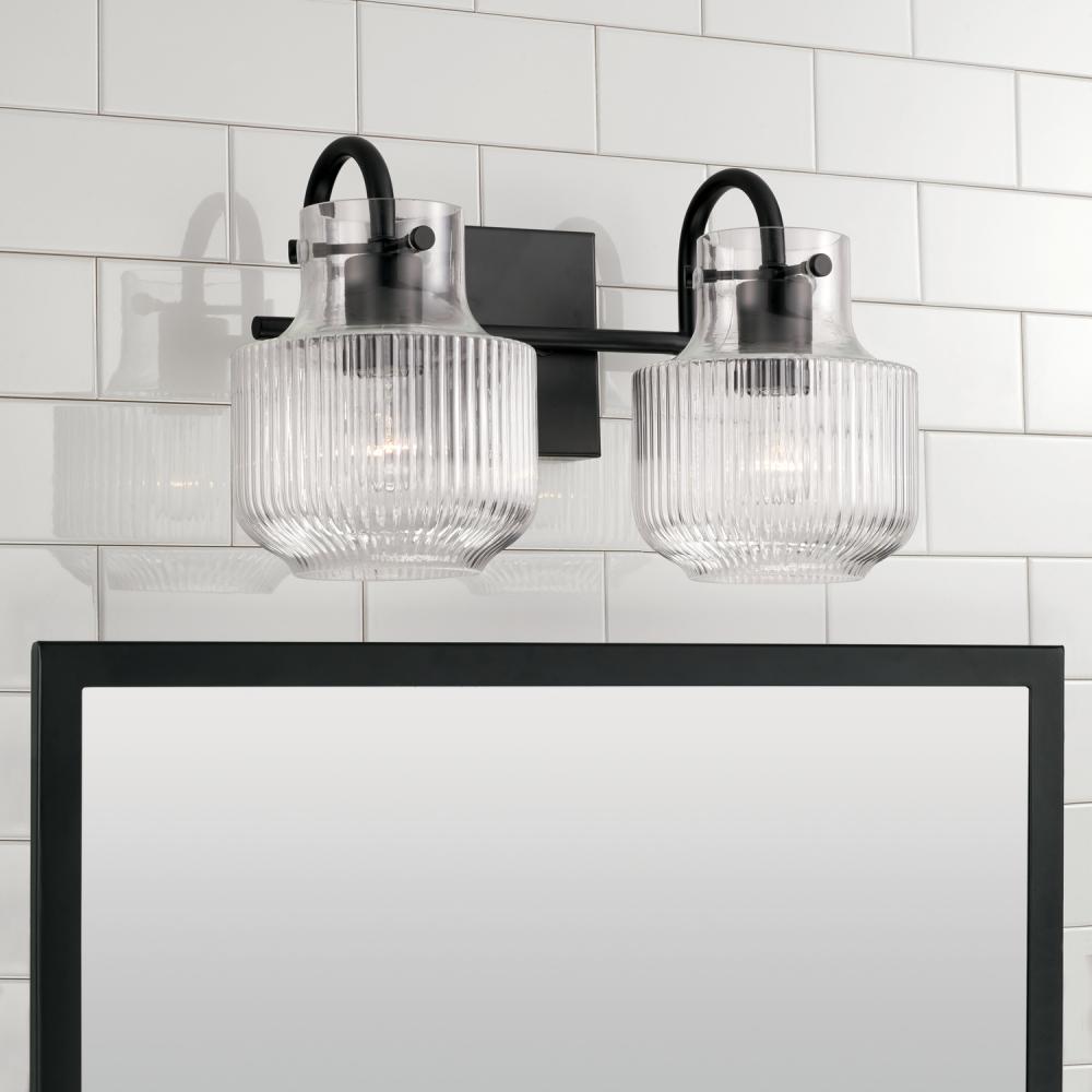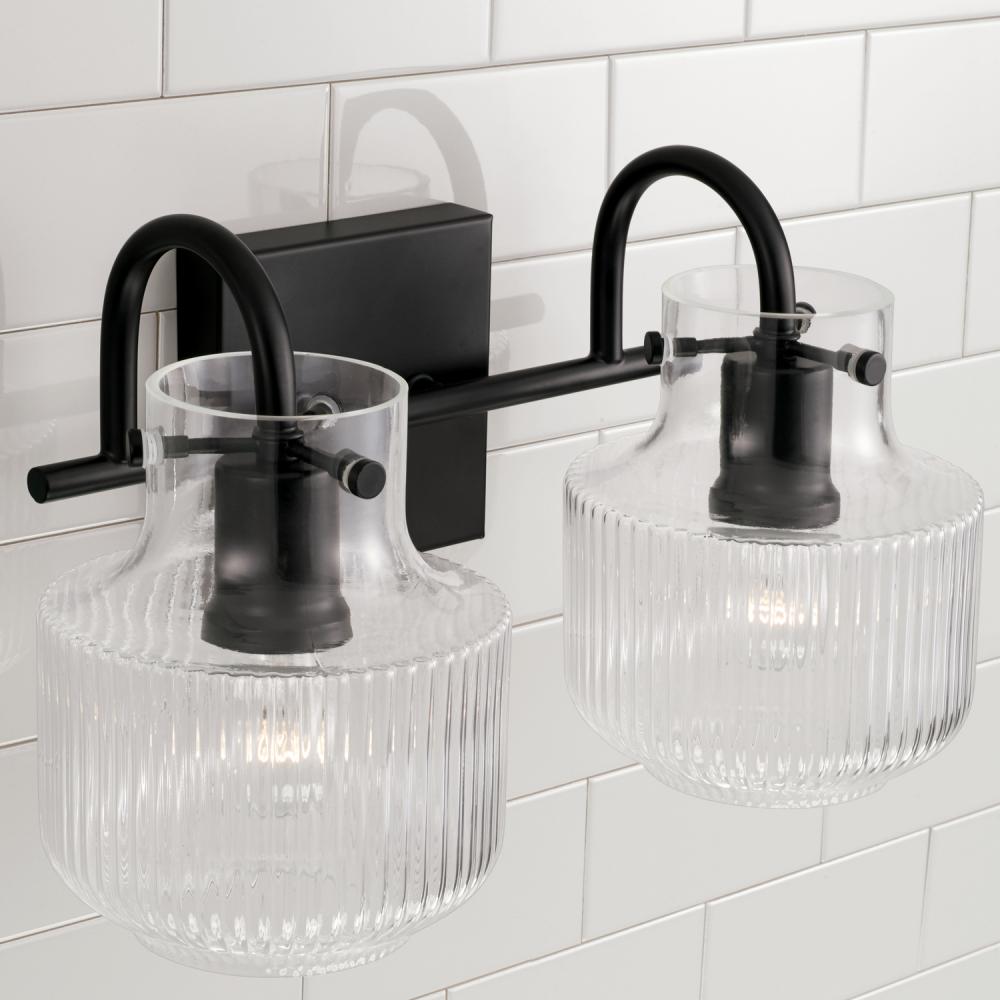 Fluted glass and a tulip silhouette create organic intrigue with the Nyla 2-Light Vanity. The timeless tone of the Matte Black finish reflects a sleek and stunning style. Also available in a 3-Light.