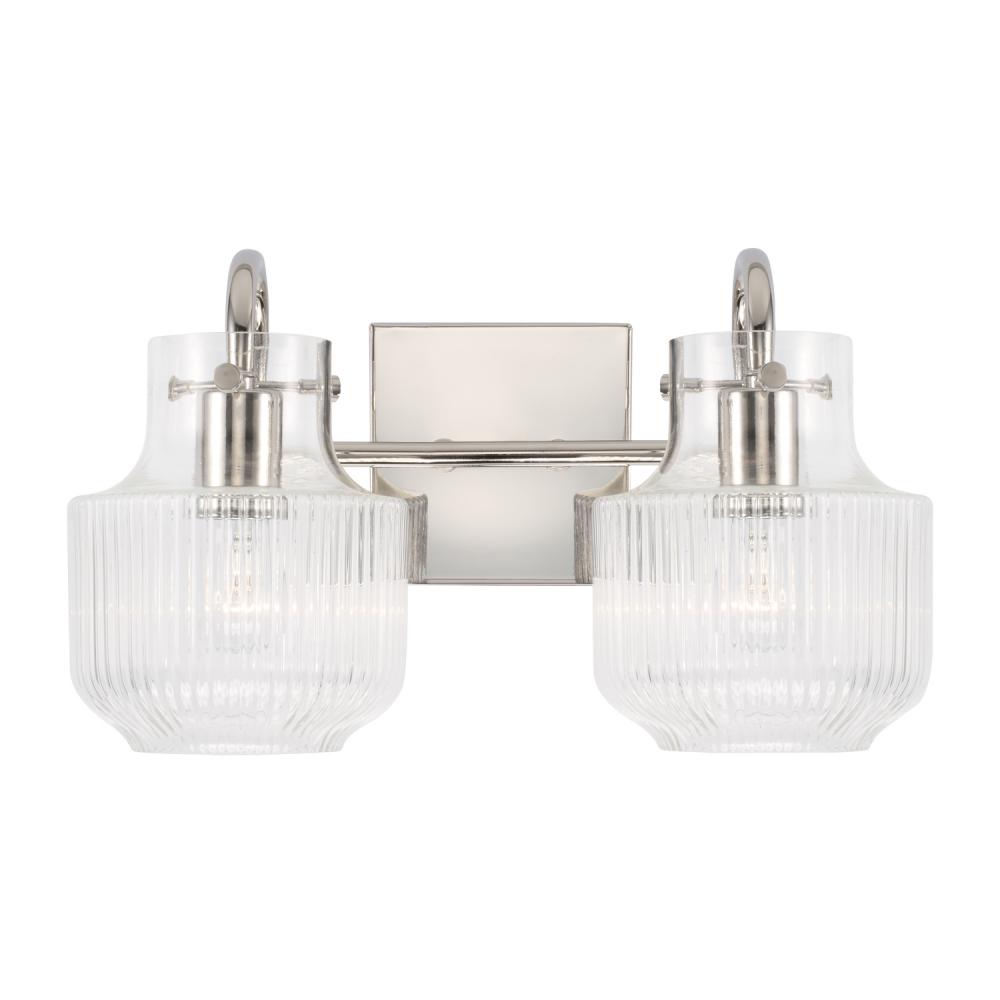 Fluted glass and a tulip silhouette create organic intrigue with the Nyla 2-Light Vanity. The high shine of the Polished Nickel finish reflects a sleek and stunning style. Also available in a 3-Light.