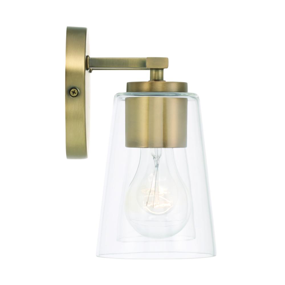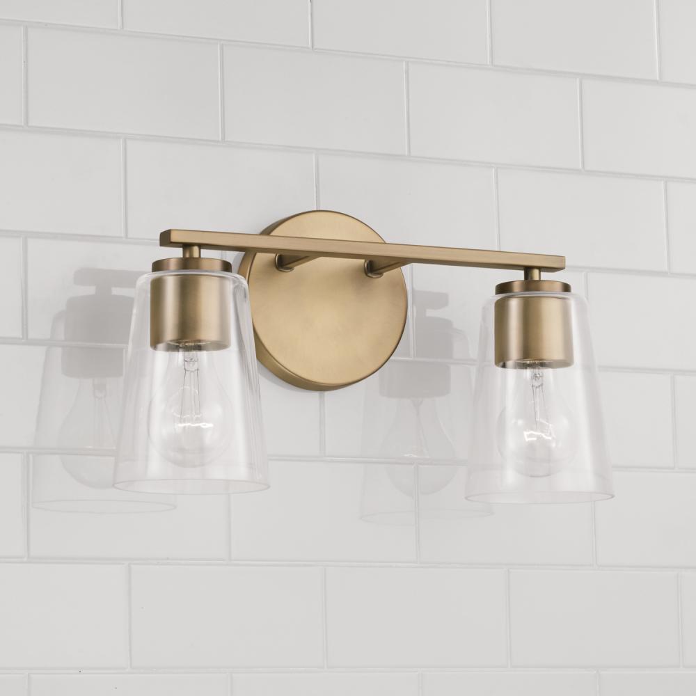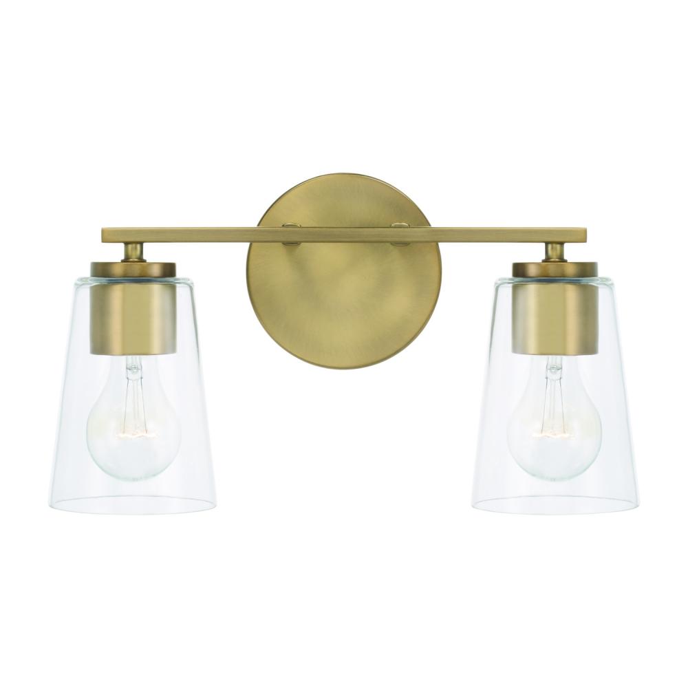 14.5"W x 8.25"H 2-Light Vanity in Aged Brass with Clear Glass