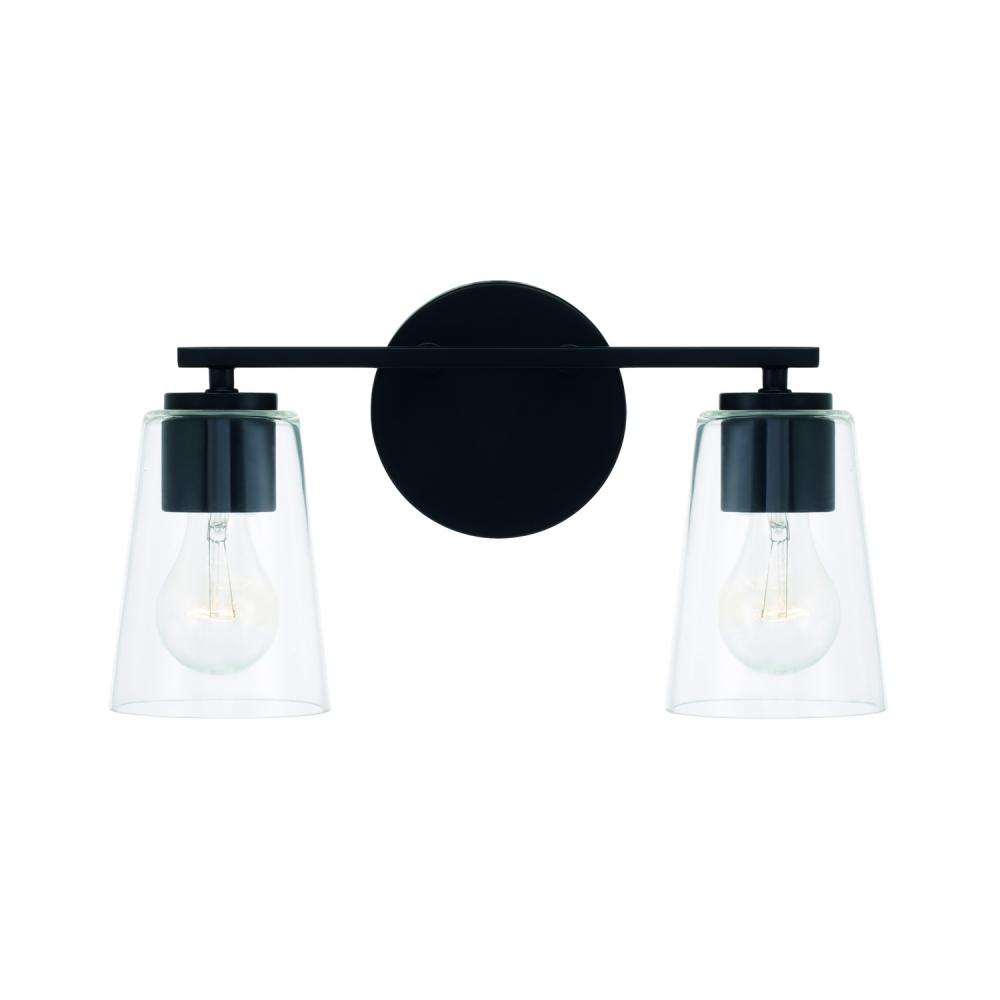 14.5"W x 8.25"H 2-Light Vanity in Matte Black with Clear Glass