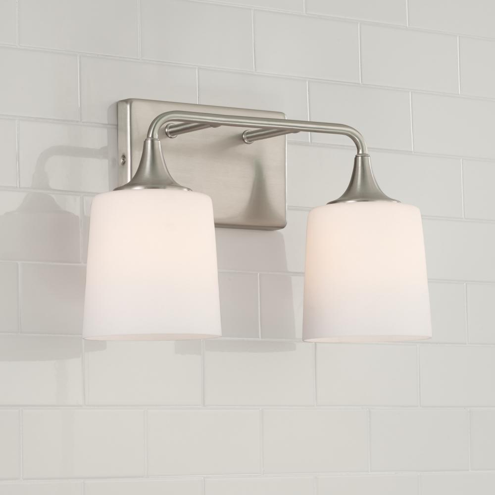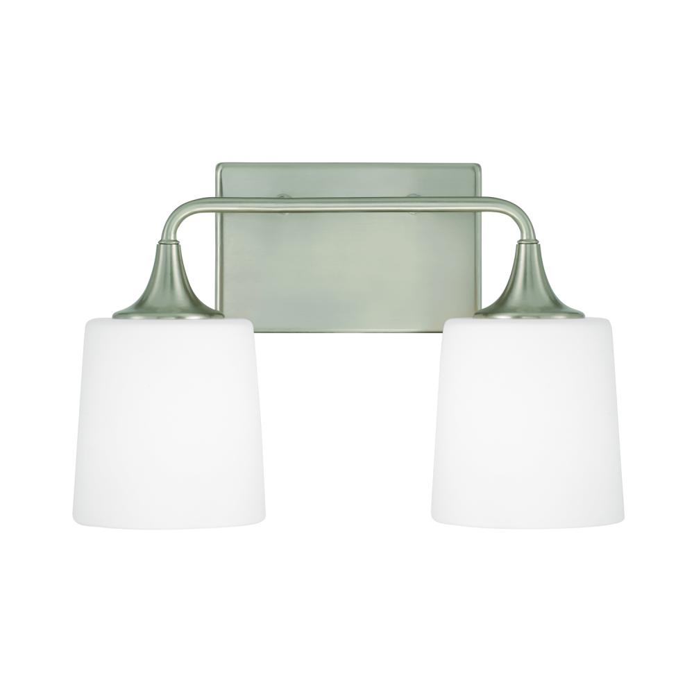 16"W x 10.25"H 2-Light Vanity in Brushed Nickel with Soft White Glass