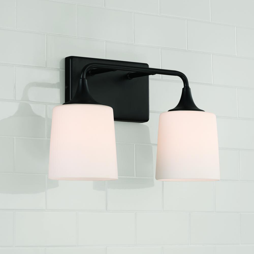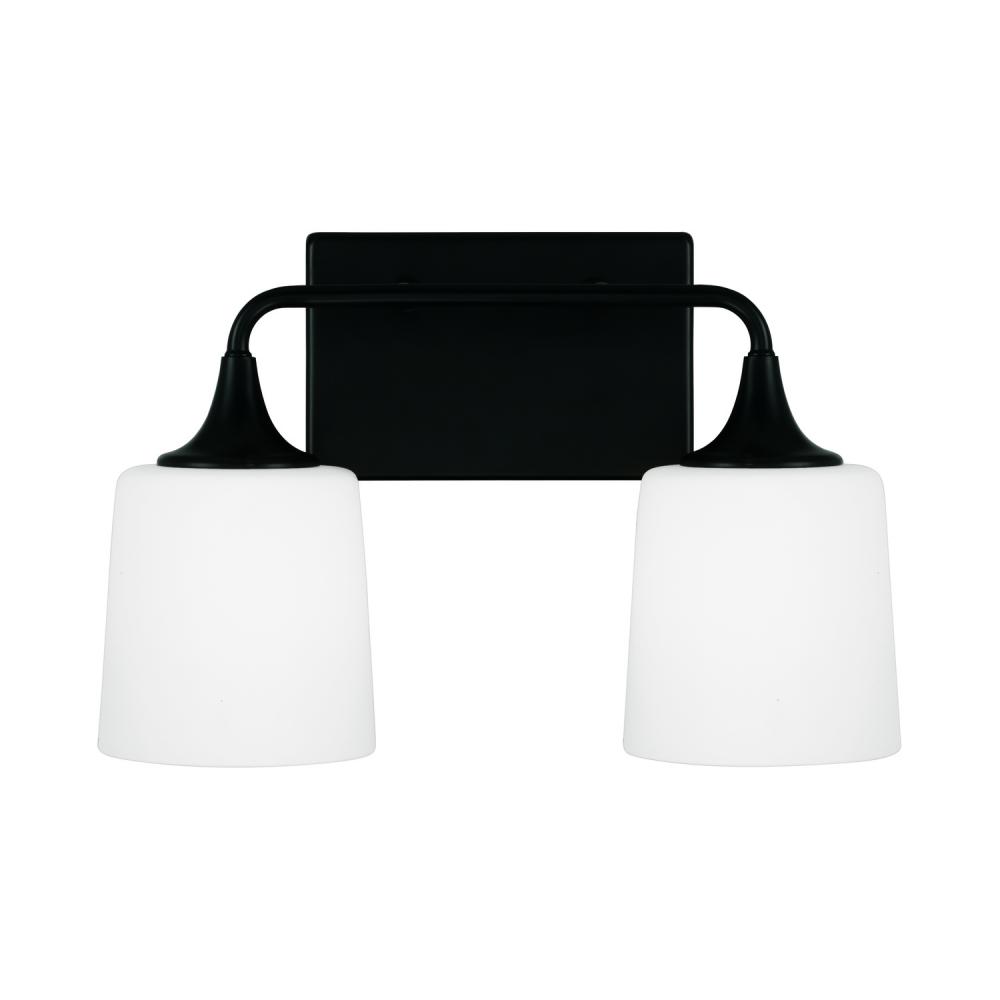 16"W x 10.25"H 2-Light Vanity in Matte Black with Soft White Glass