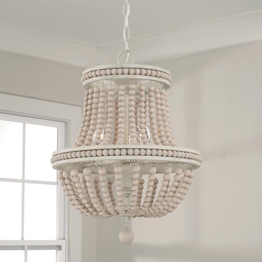 Bring bohemian charm to any space with the hand-painted wood beads of the Handley 3-Light Chandelier. The light, neutral tones of the Sand Dollar finish complement a variety of styles, while the sand-like texture creates dimension.