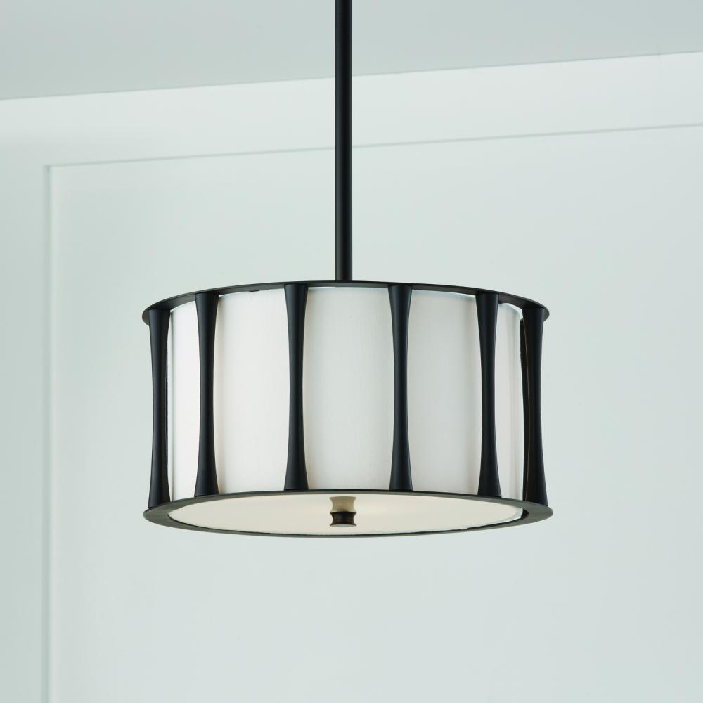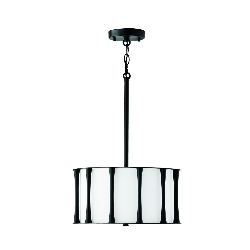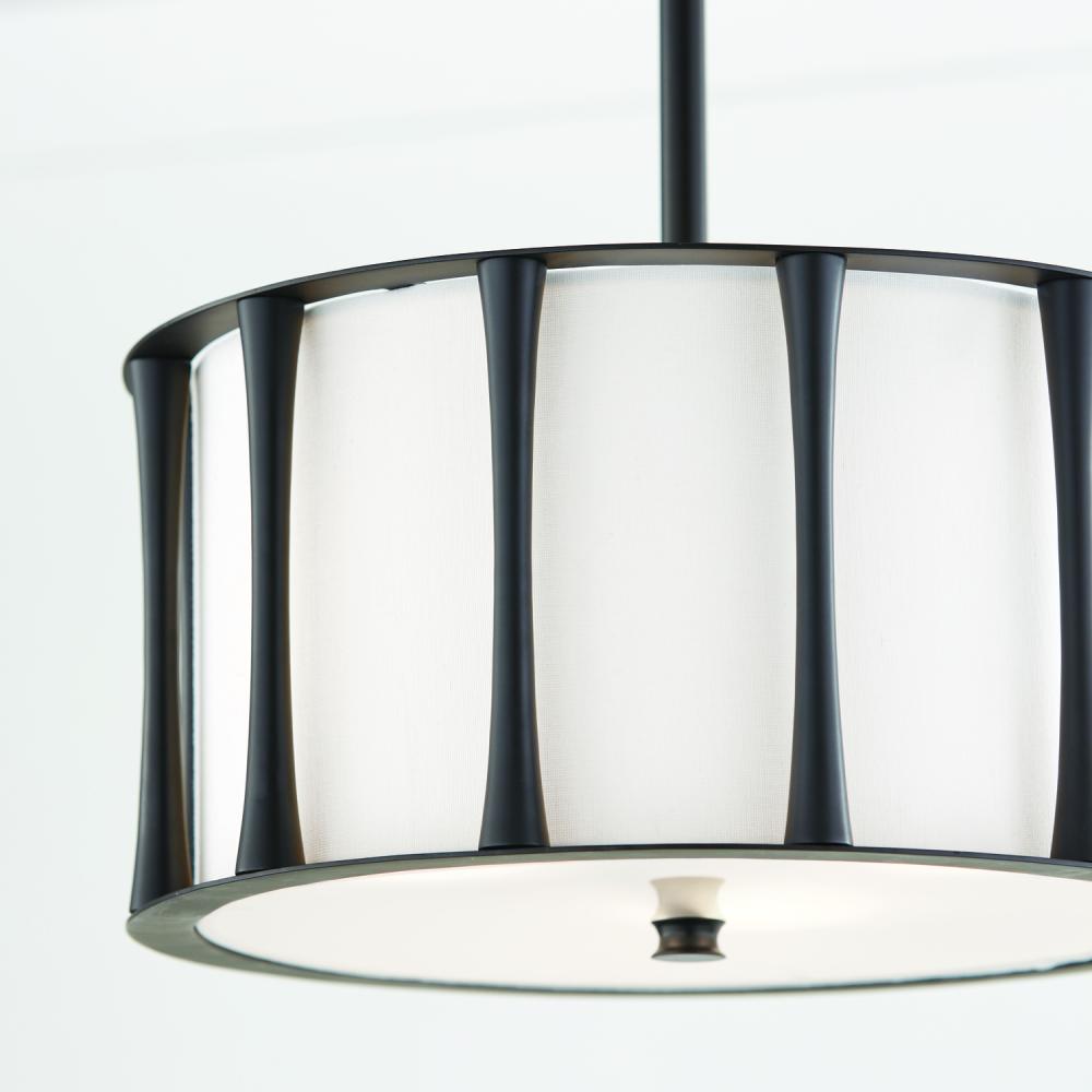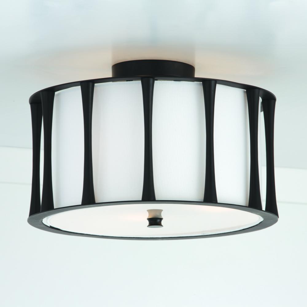 15"W x 9"H 3-Light Semi-Flush in Matte Black with White Fabric Shade