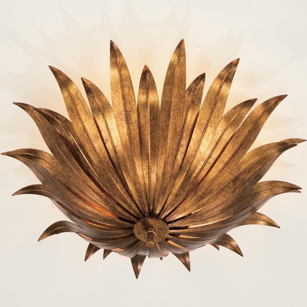 18"W x 8.5"H 3-Light Botanical Semi-Flush in Antique Gold