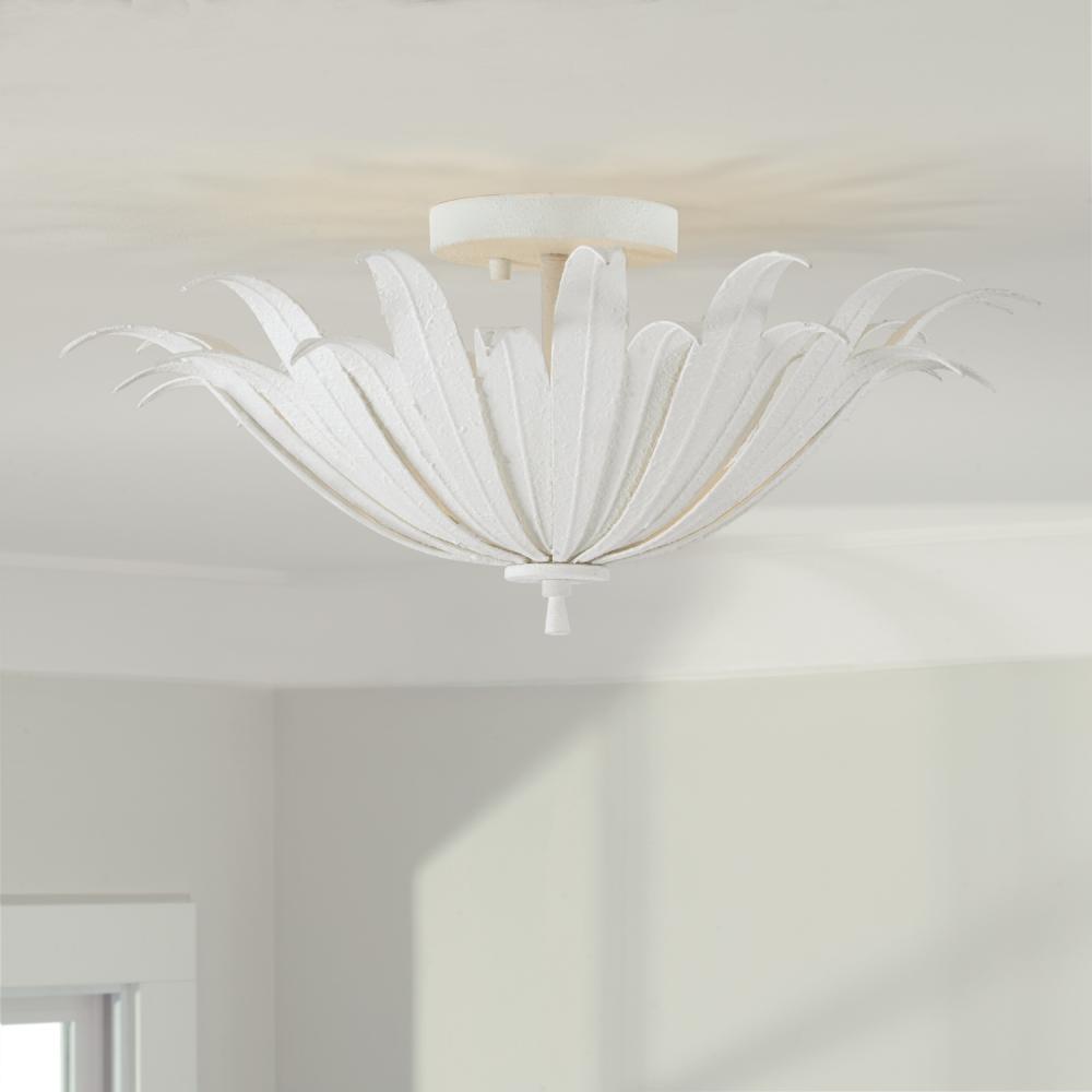 18"W x 8.5"H 3-Light Botanical Semi-Flush in Textured White