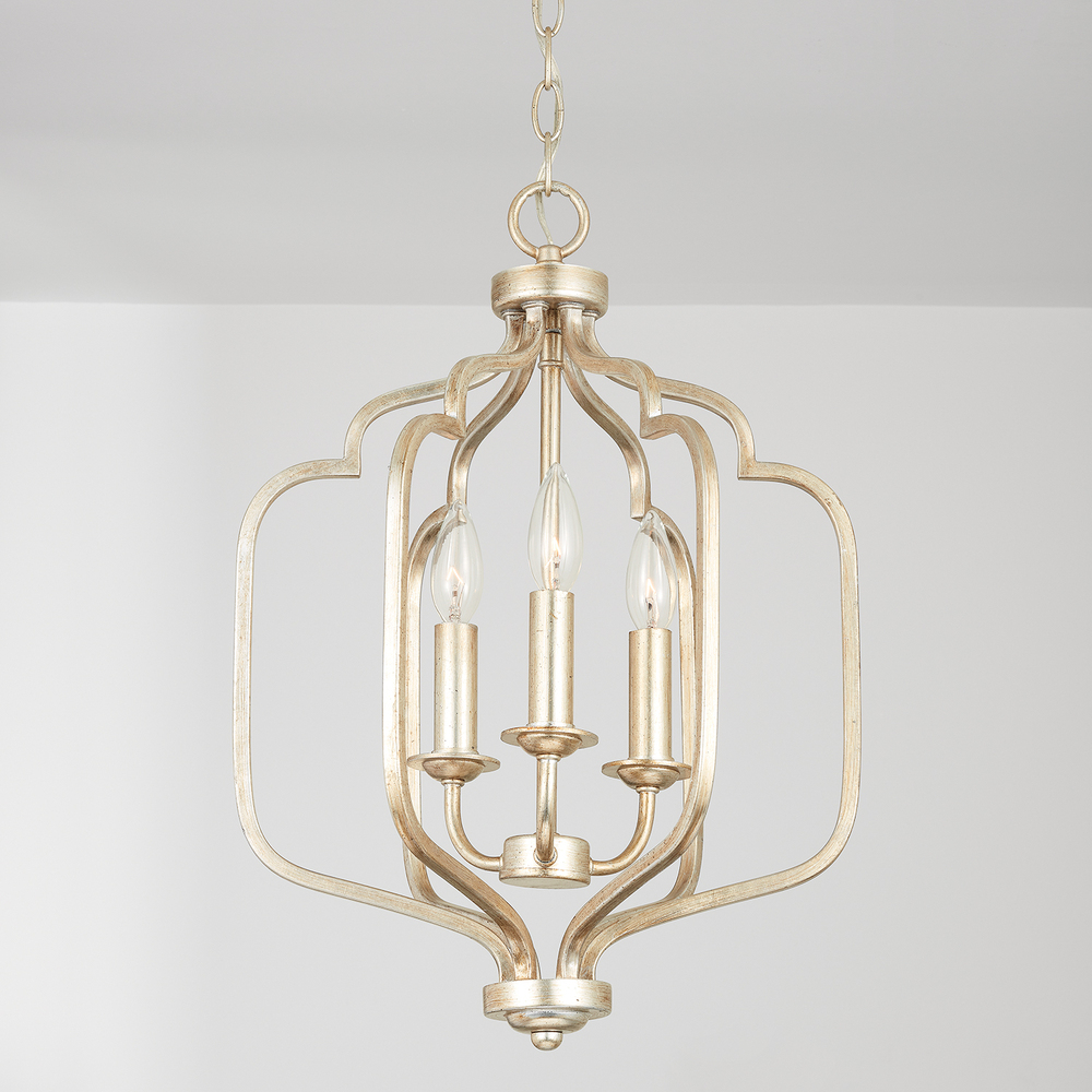 Artful, scripted curves create the silhouette of this foyer. The open, airy shape evokes a sense of romance and elegance. Available as a small 3-light or large 6-light foyer, this piece can also be used as a pendant.