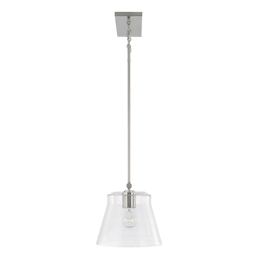 Simple and sleek, the Baker Island for Homeplace brings standout style to signature pieces. The Brushed Nickel finish beautifully accents the tapered seeded glass for versatility and sophistication.