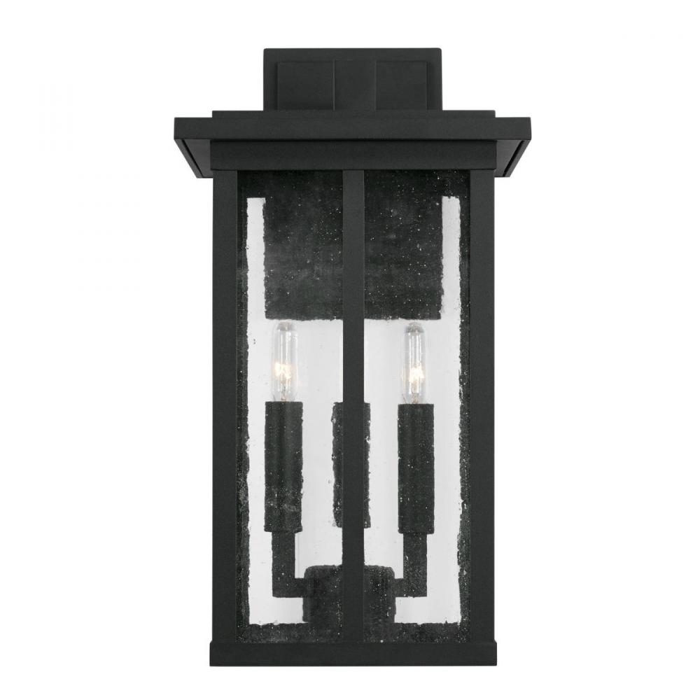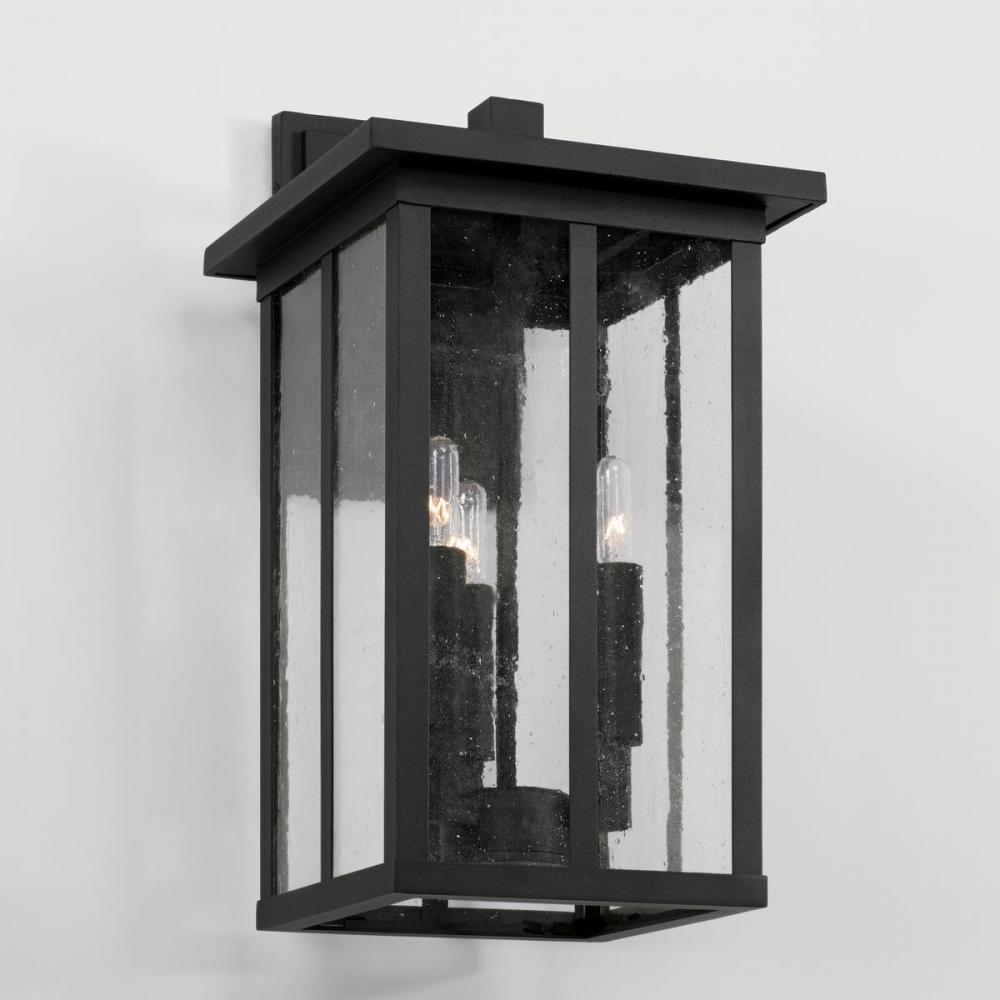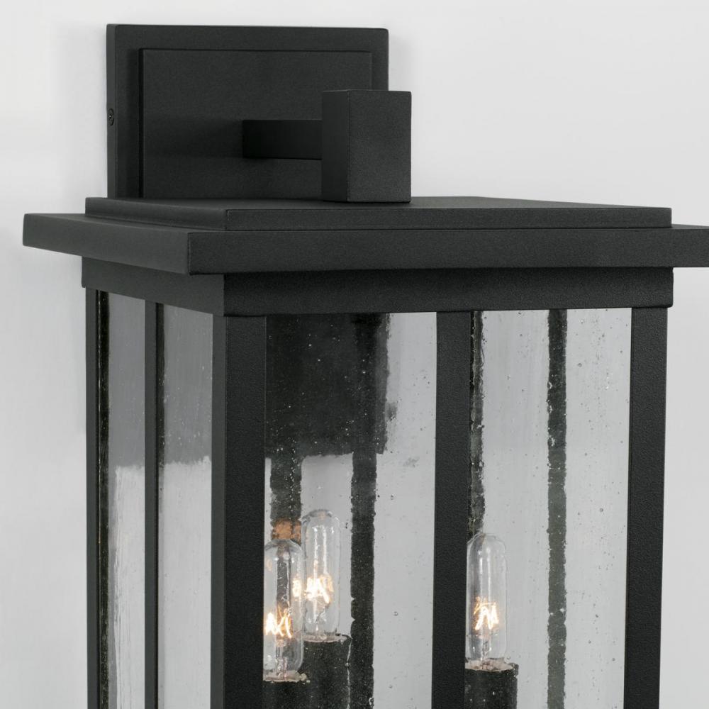Clean lines and framed edges in the Barrett Collection give a graphic punch without being too overpowering. The textured water glass diffuses light and emits a warm glow for your porch or patio. These fixtures are part of our Rain or Shine Collection and are backed by our five-year warranty.