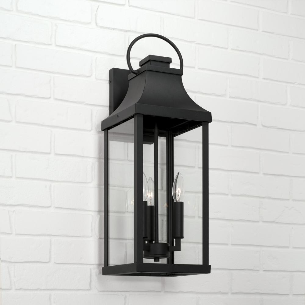 Transitional meets modern with the Bradford Large Wall Lantern. The bold lines and an oversized ring in a Black finish adds classic curb appeal to your home. Part of our Rain or Shine Collection and backed by our five-year warranty.