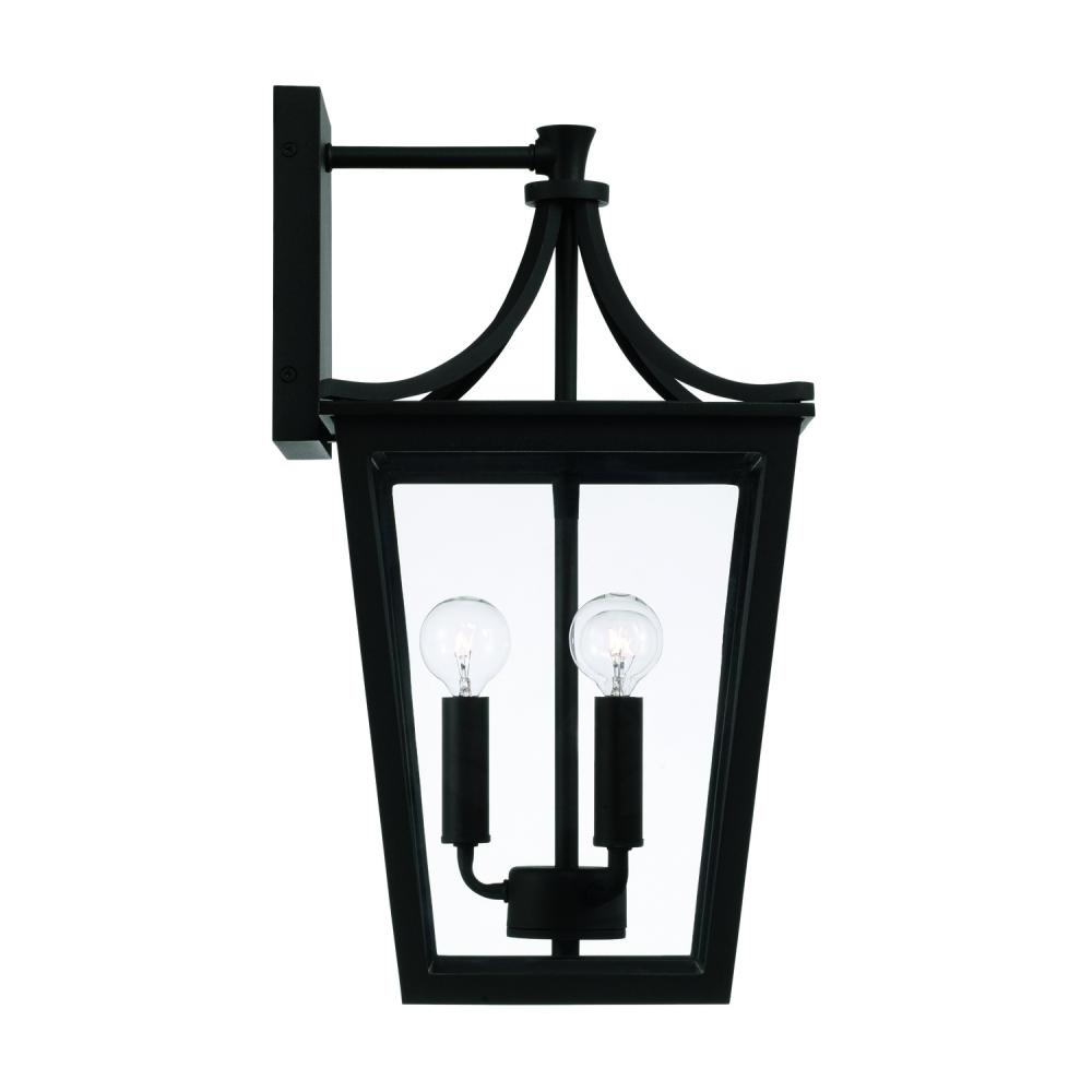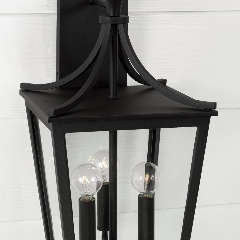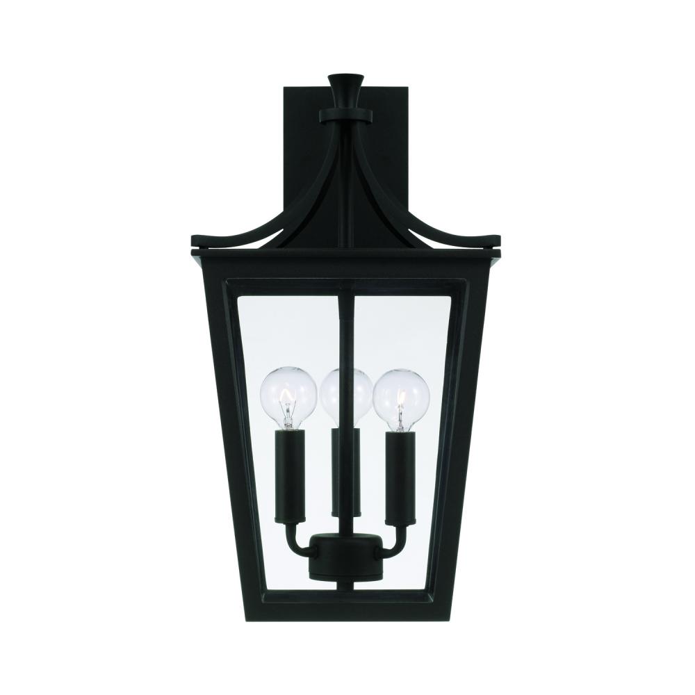 10"W x 19.25"H 3-Light Outdoor Wall Lantern in Black with Clear Glass