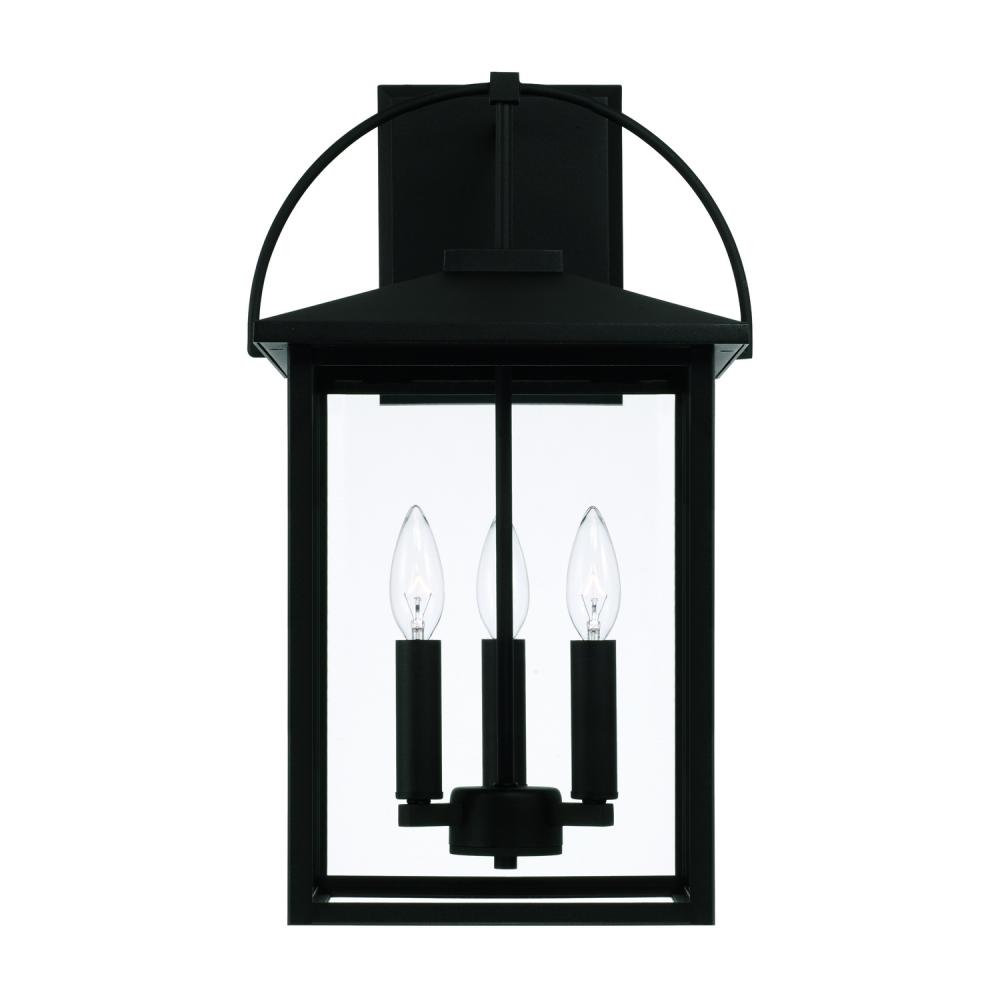 11.5"W x 19.75"H 3-Light Outdoor Wall Lantern in Black with Clear Glass
